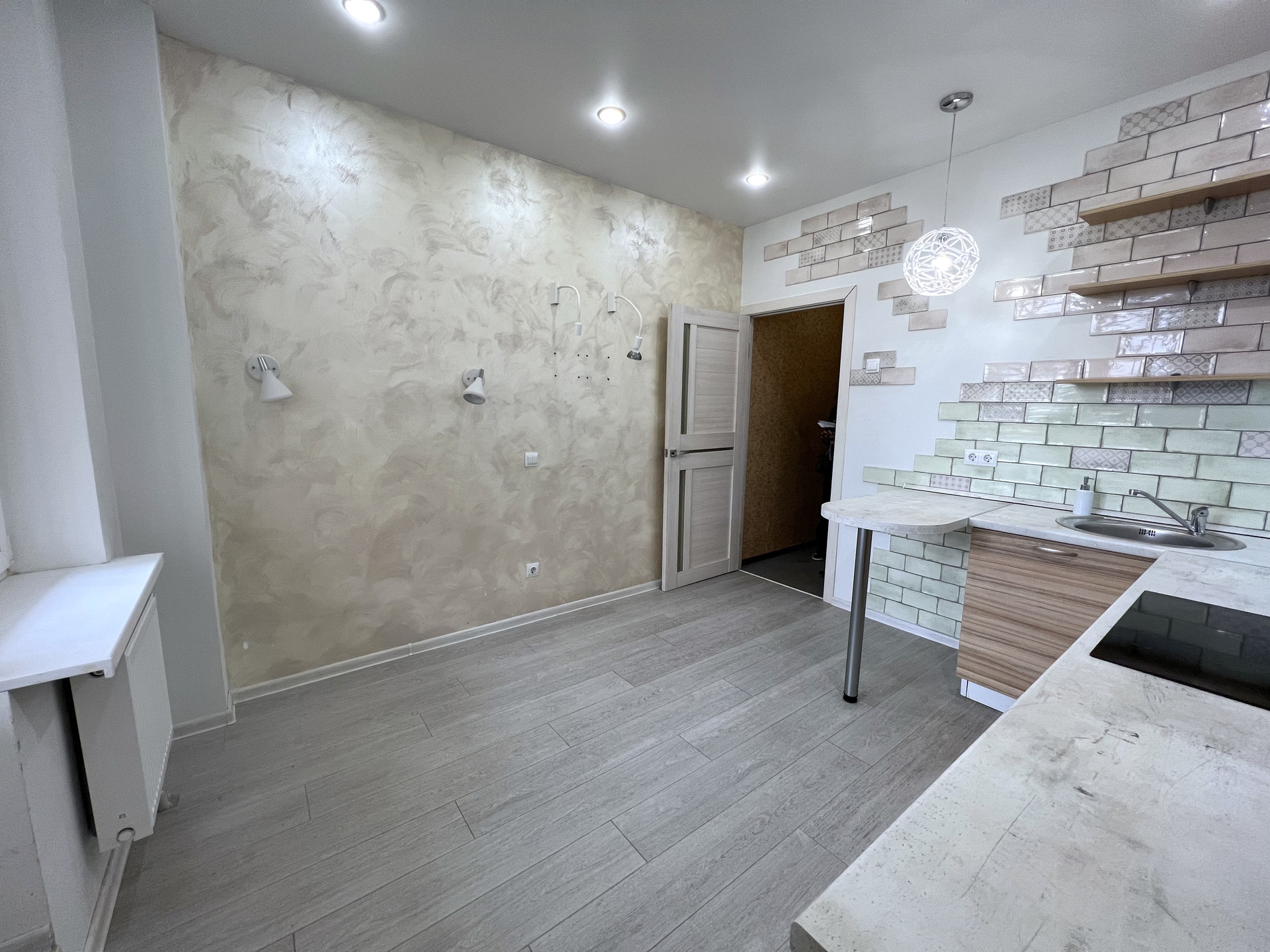- Комната 17.6 кв.м. Комната широкая и светлая, что позволяет осуществить грамотное зонирование на два функциональных помещения. Например спальня+гостиная или спальня+кабинет.  В прихожей есть отдельная гардеробная (кладовка) 1,7 кв.м., раздельный санузел, окна выходят на восток.  Сделан ремонт в комнате и на кухне. Во всех остальных помещениях ремонт от застройщика. Хорошие, спокойные соседи по площадке.