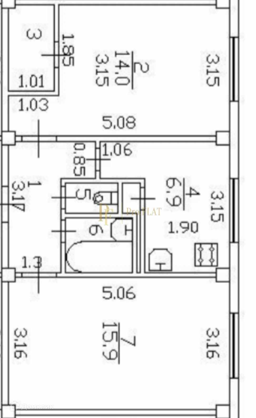 Площадь кухни 6.9 м2