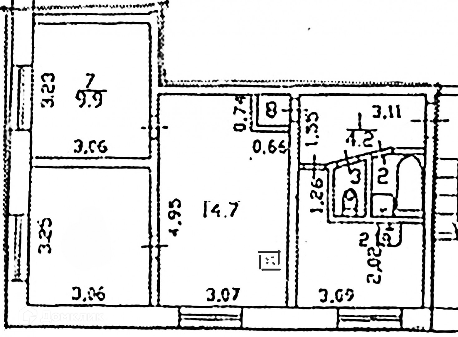 Квартира двухстороння, кухня-гостиная 14,7м, комнаты изолированные 9,9+9,8+7,2 м. Окна в квартире - стеклопакеты, во двор.