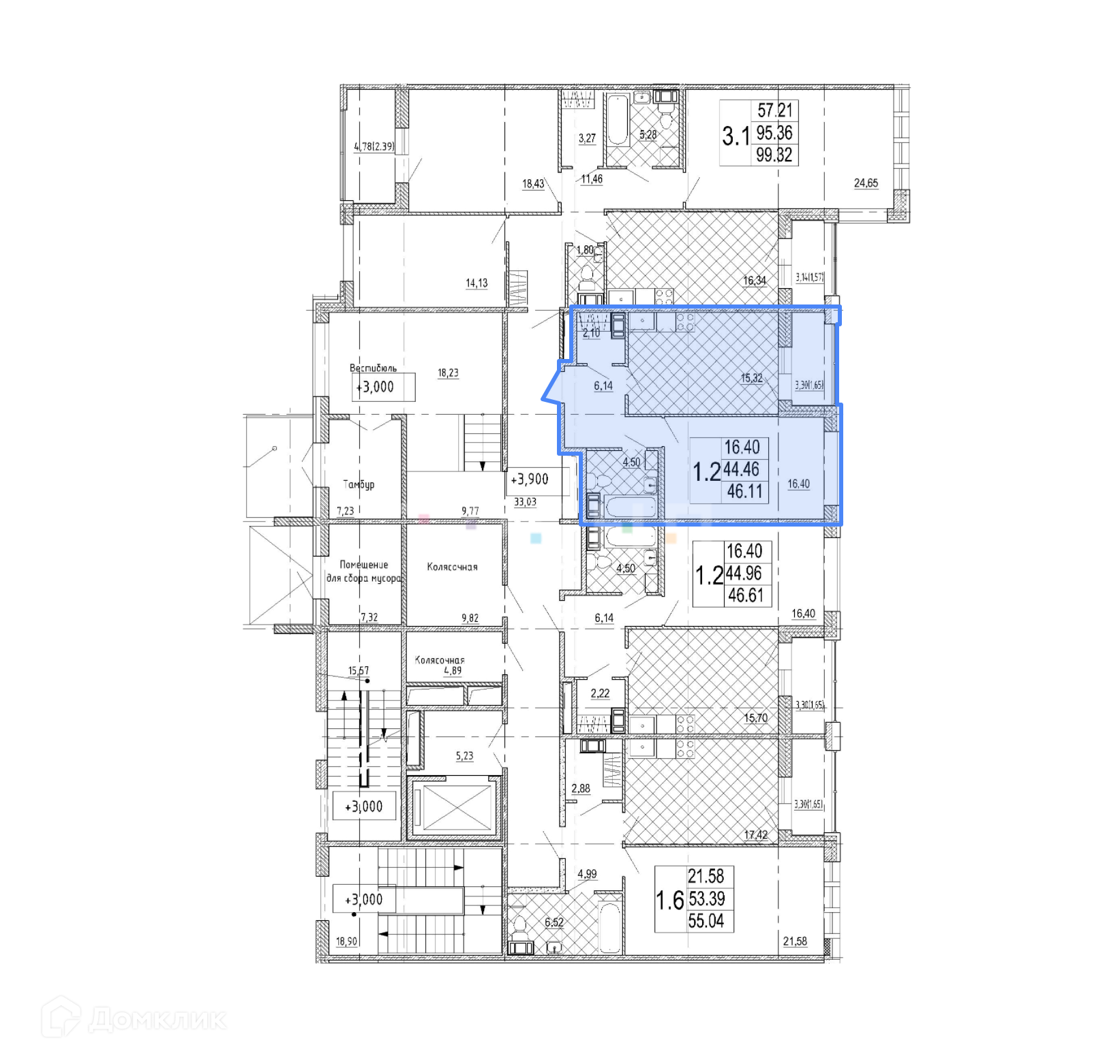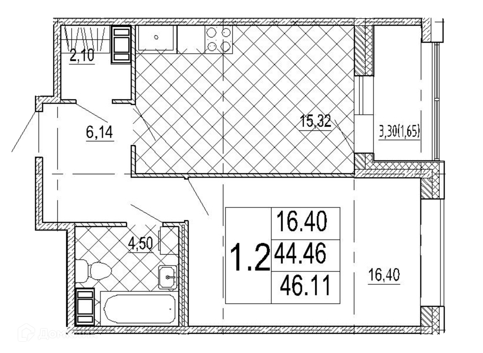 Общая площадь 44.46 м2