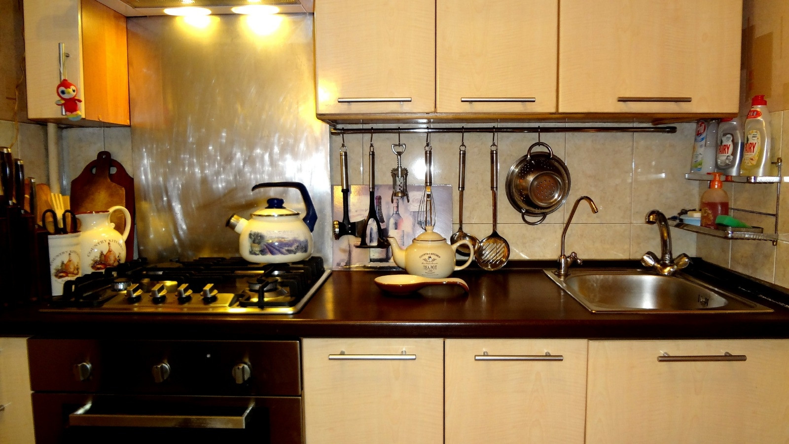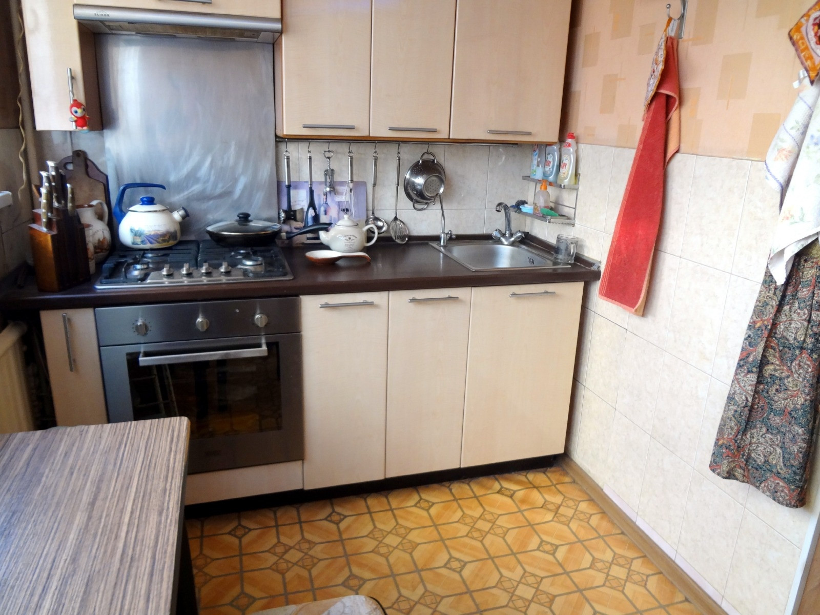 Кафель на стенах - кухня, ванная, туалет.