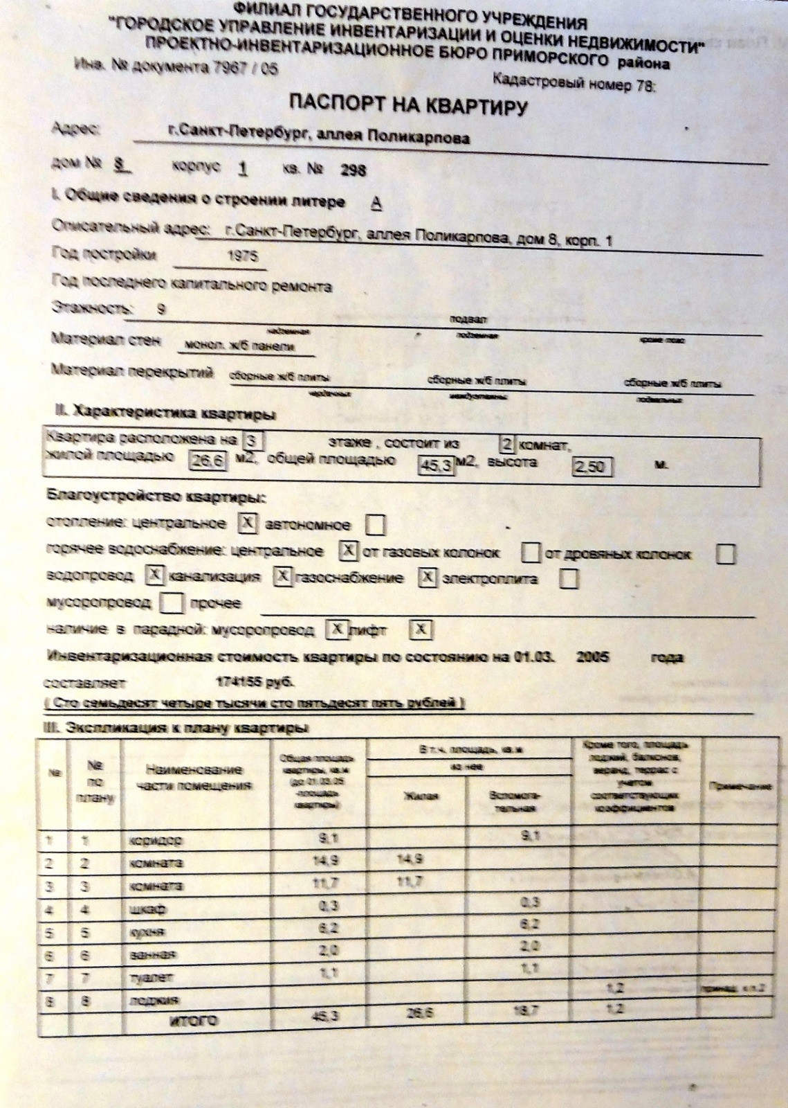 3-й этаж девятиэтажного панельного дома серии 1ЛГ-600 (польский проект) 1975 года постройки.