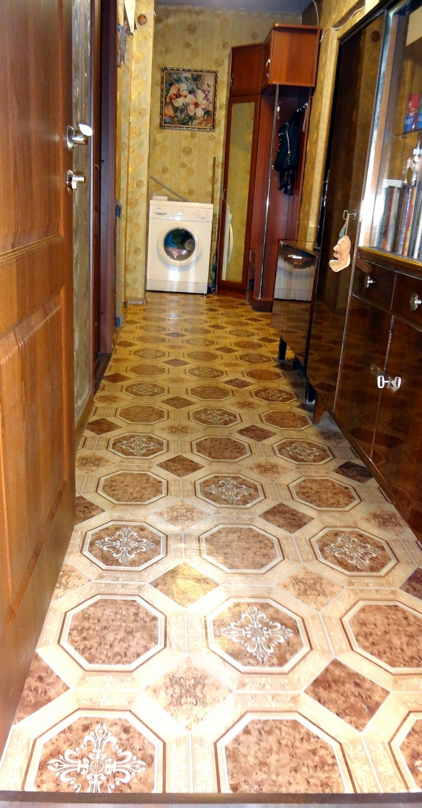 Половая плитка в ванной комнате и туалете. Остальное половое покрытие утеплённый плотный линолеум.