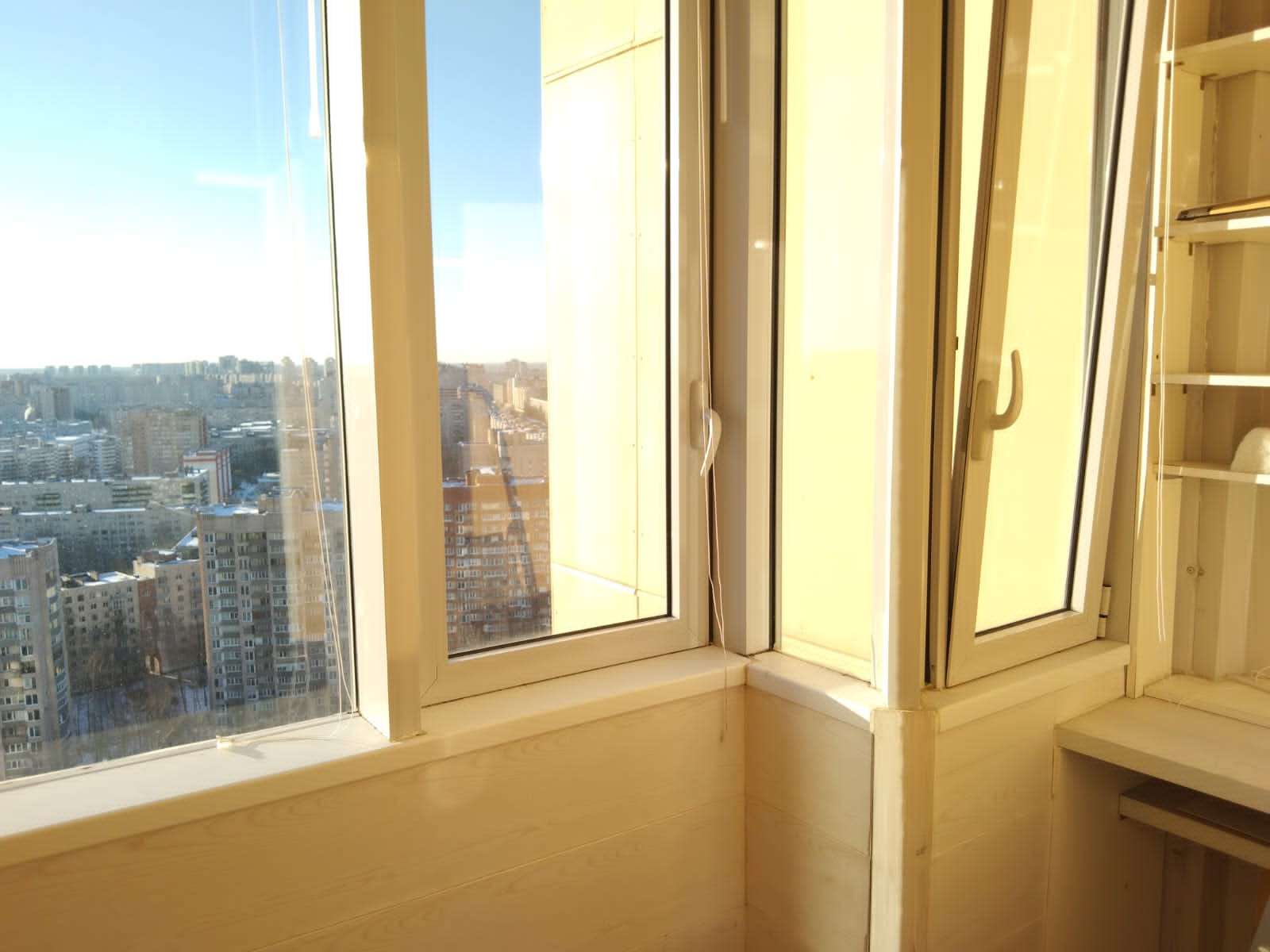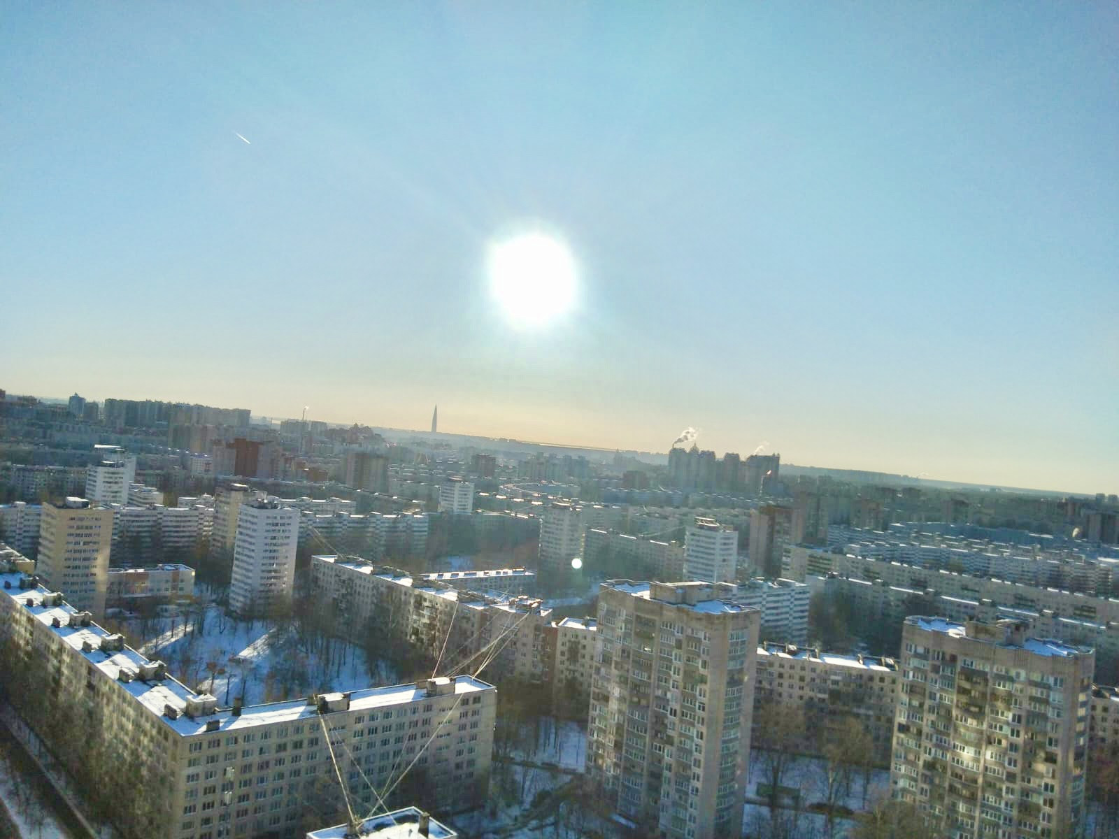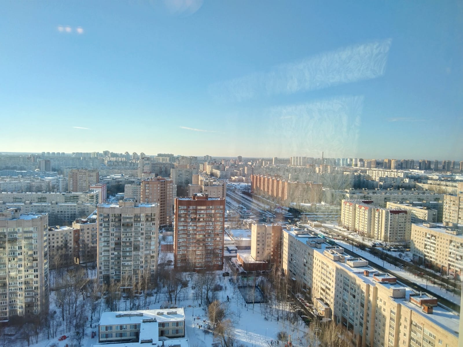 Из окон открывается великолепные виды на город. Видна башня Газпрома. И особенно красиво в ночное время. Управляющая компания работает на пять балов.