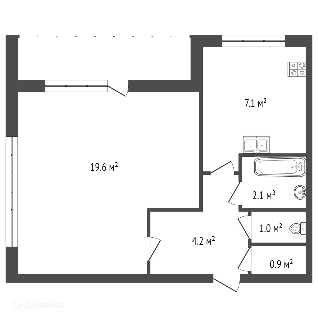 Общая площадь 34 м2