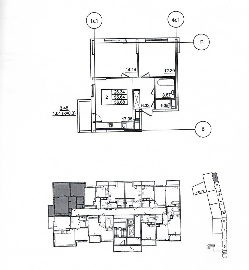 Общая площадь 56.68 м2