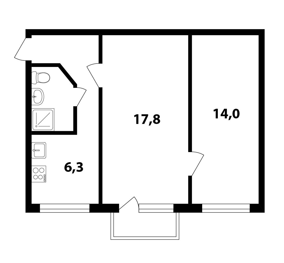 Площадь кухни 6.3 м2