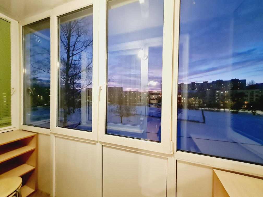 В квартире тепло, светло и уютно. Общая площадь 45 кв.м. Комнаты смежные (17,8 кв.м.+14 кв.м). Окна обеих комнат выходят во двор на юго-западную сторону. Во всей квартире двухкамерные стекло пакеты, в том числе на балконе. Вместительная гардеробная. Ремонт делался для себя.