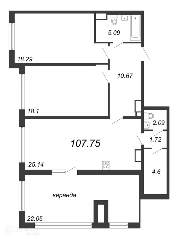 Общая площадь 105.7 м2