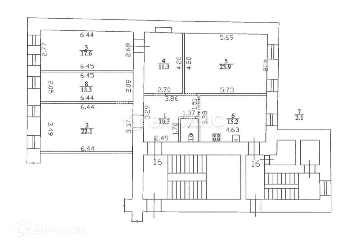 Высота потолков 2.64 м