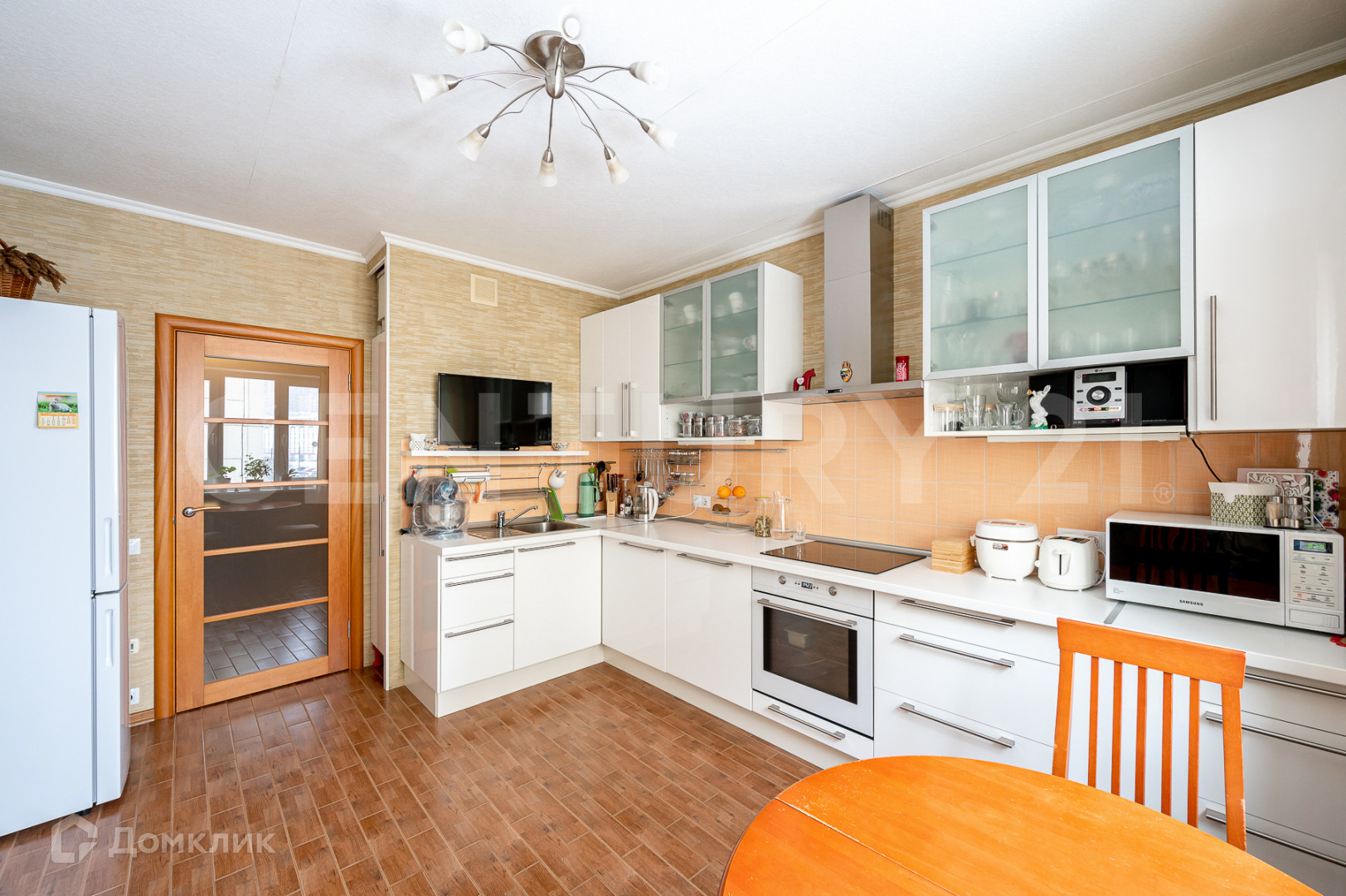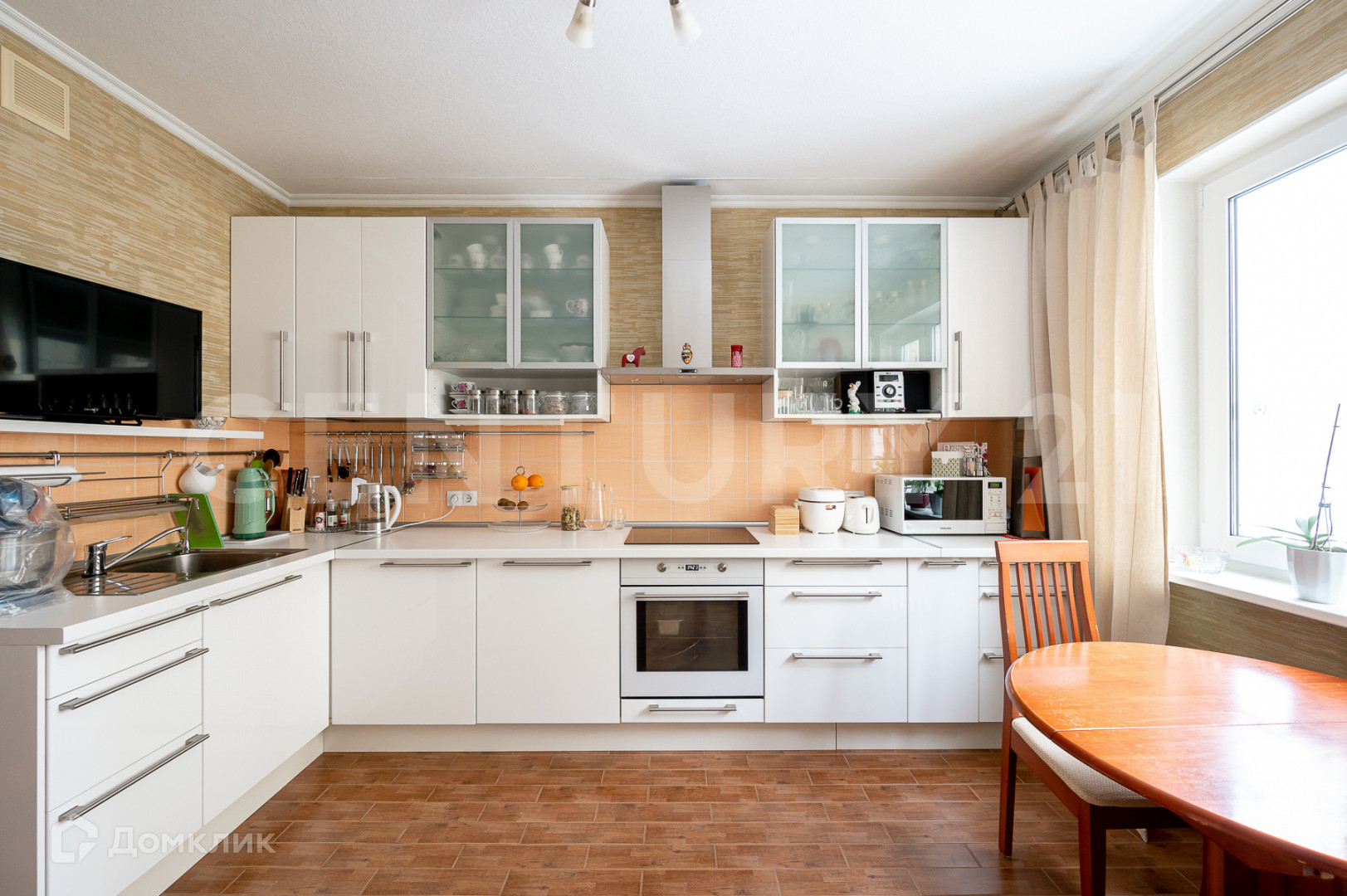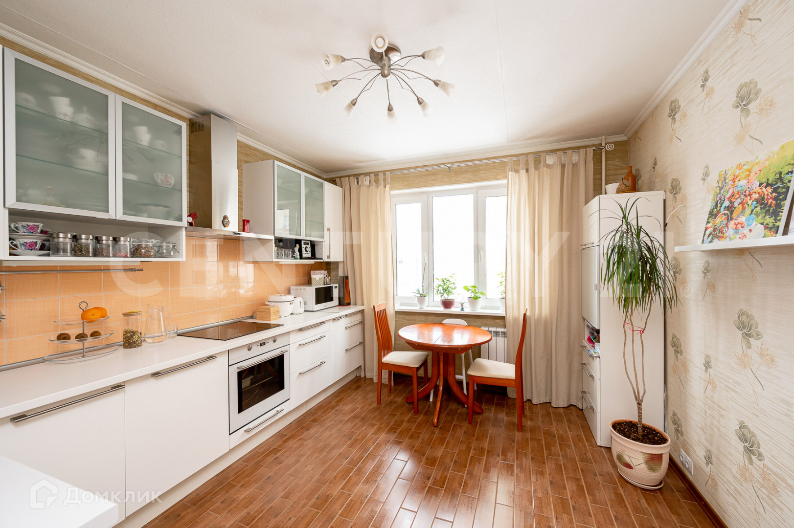 В квартире сделан хороший ремонт. Новая медная электропроводка, теплый керамический пол в прихожей и кухне, в комнате- дорогая паркетная доска, кафель в ванной и туалете. Установлены качественные двери, облицованные натуральным шпоном, евро-окна с двухкамерными стеклопакетами оснащены фурнитурой с защитой от случайного открывания. Кухонный гарнитур, сделанный на заказ, со встроенной варочной панелью и духовым шкафом оставляем в подарок новому владельцу.