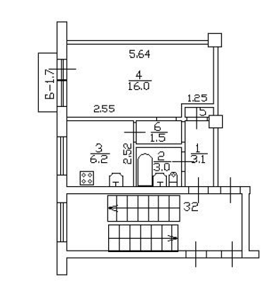 Балкон, лоджия 1 балкон
