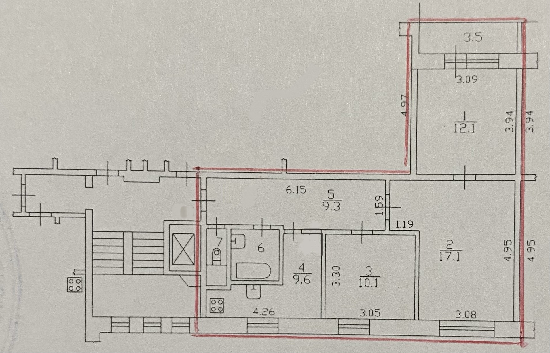 - лоджия застекленная 3,5 кв.м.