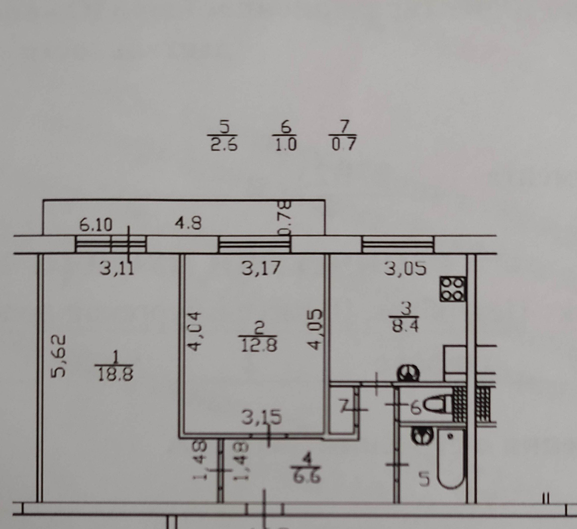 Балкон, лоджия 1 балкон