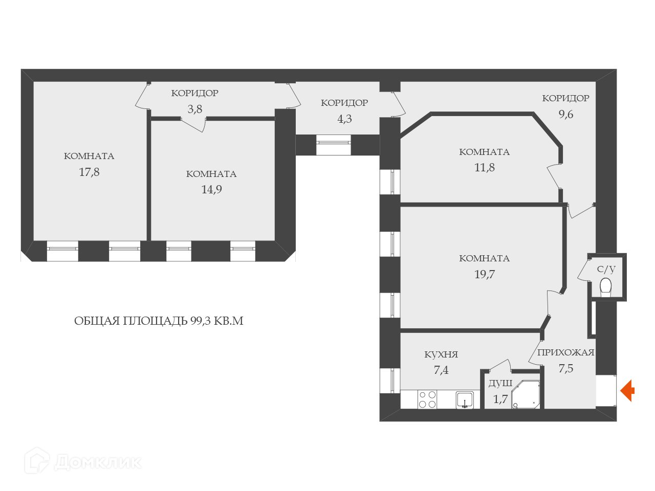 Общая площадь 99.3 м2