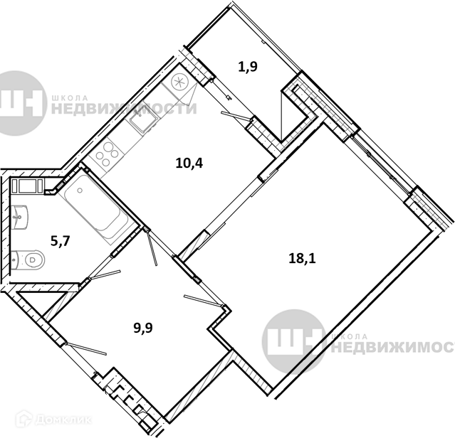 Жилая площадь 47.7 м2