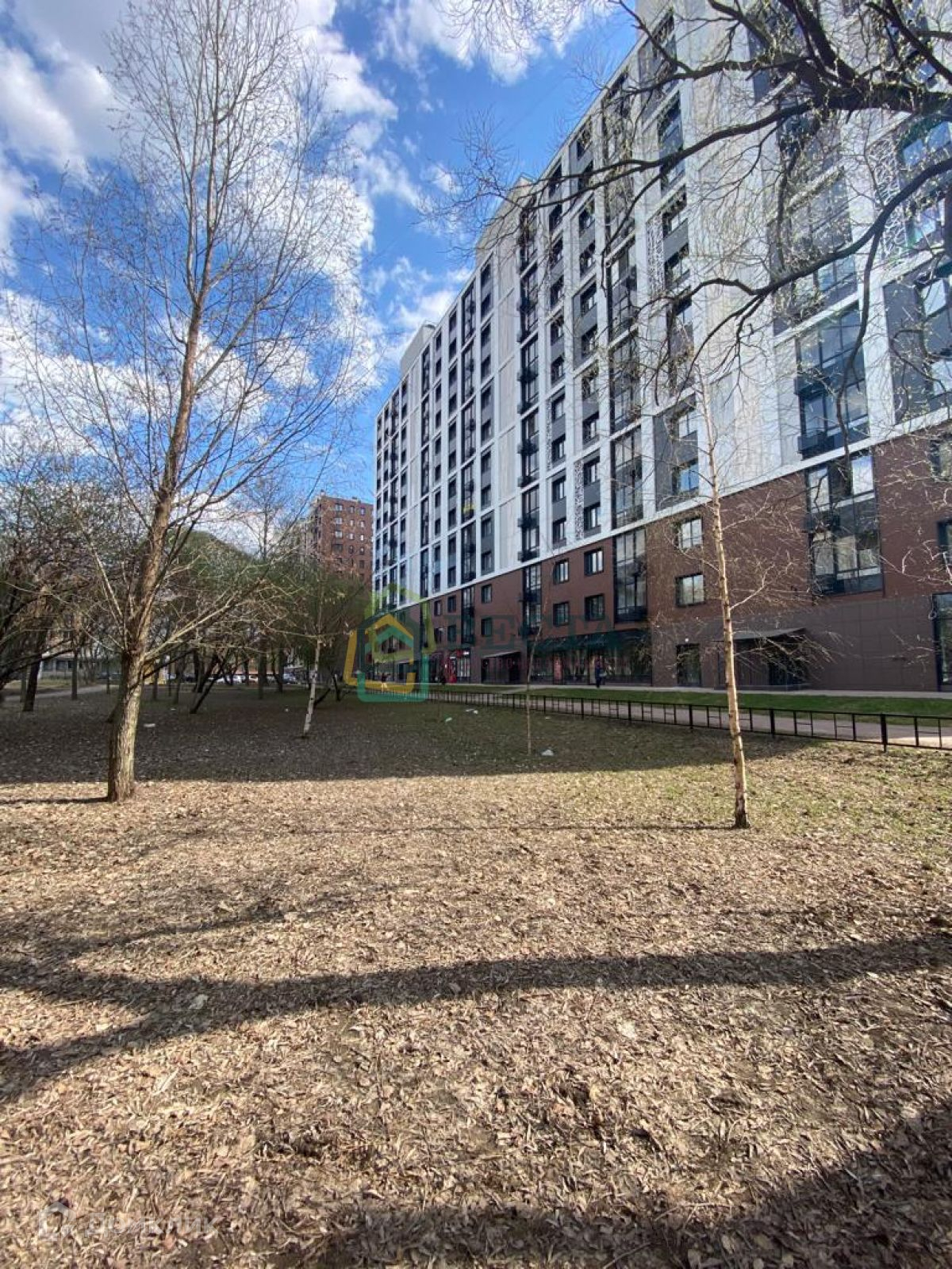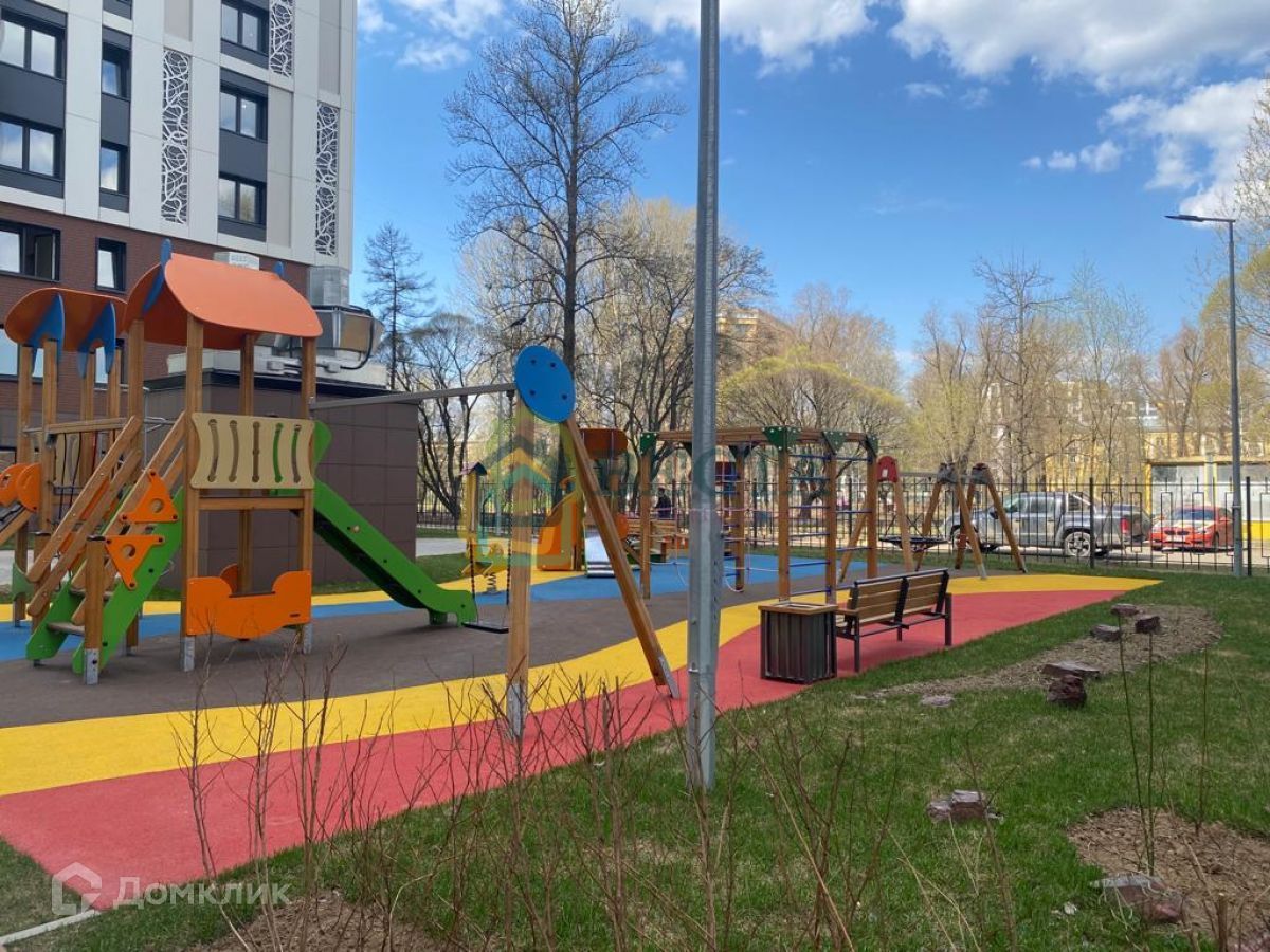 Территория комплекса огорожена, двор без машин, детские и спортивные площадки, на первых этажах коммерческие помещения, дом граничит с Пионерским садом. В соседнем дворе детский сад.