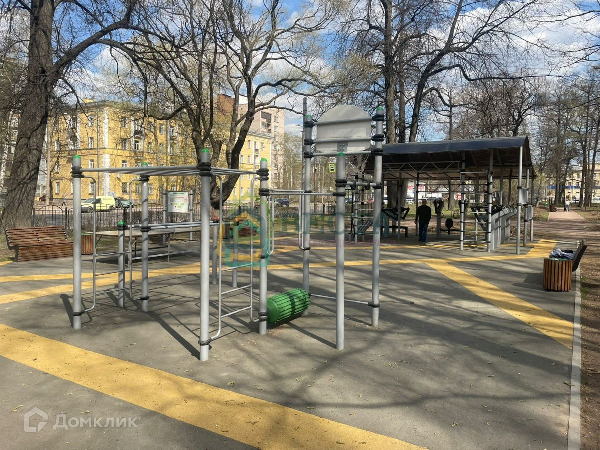 Тихий и зеленый микрорайон, до метро Лесная 15 минут, до метро Черная речка 20 минут ходьбы.