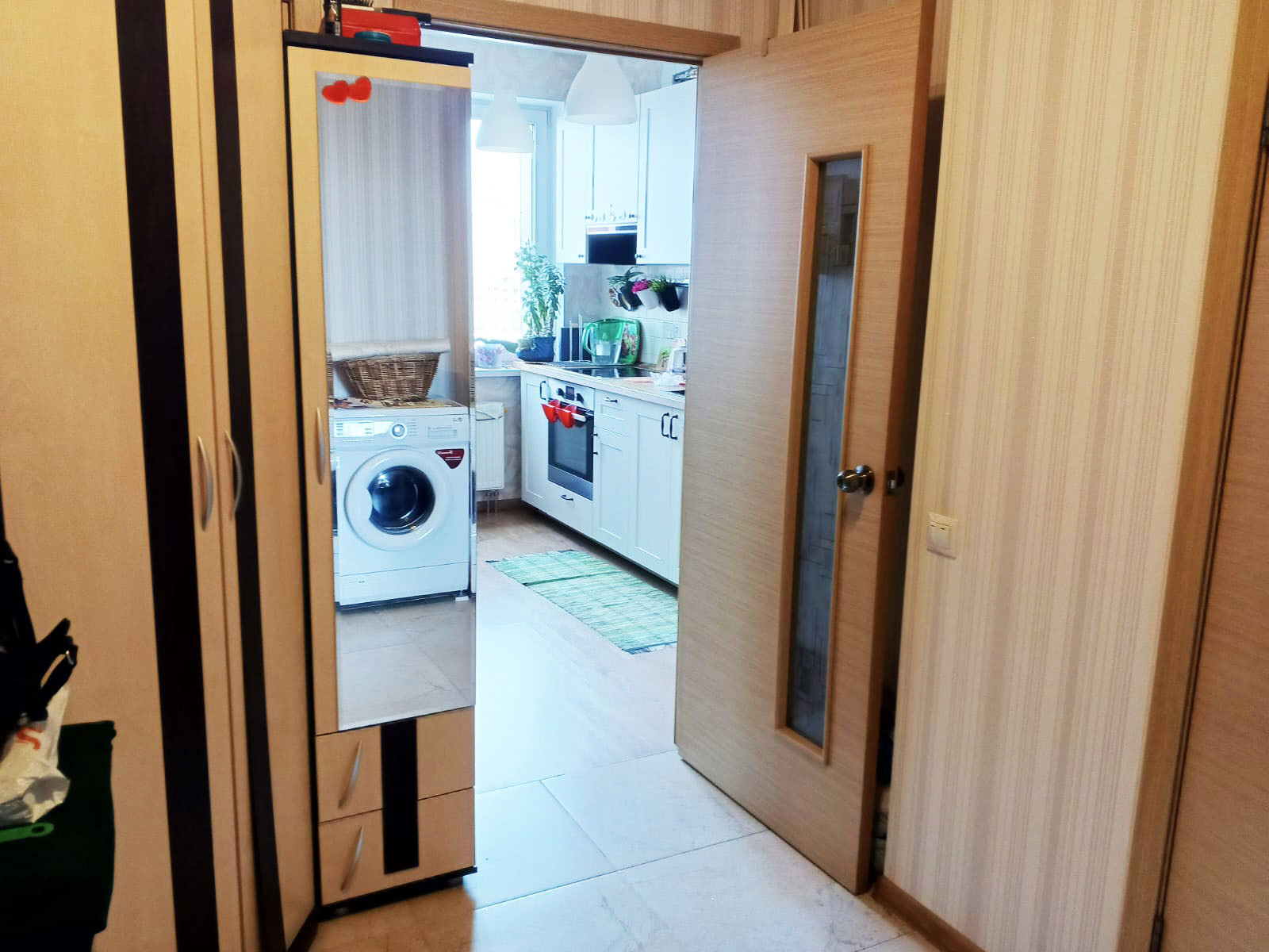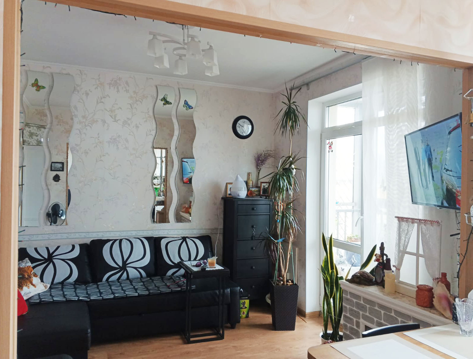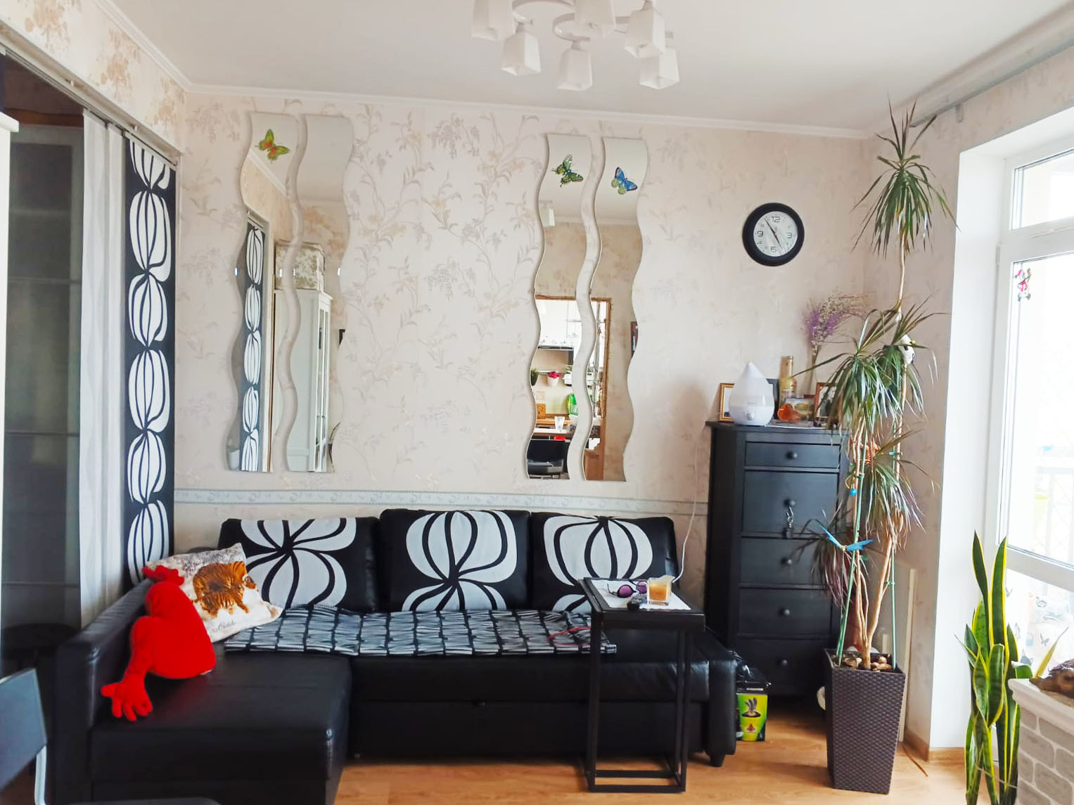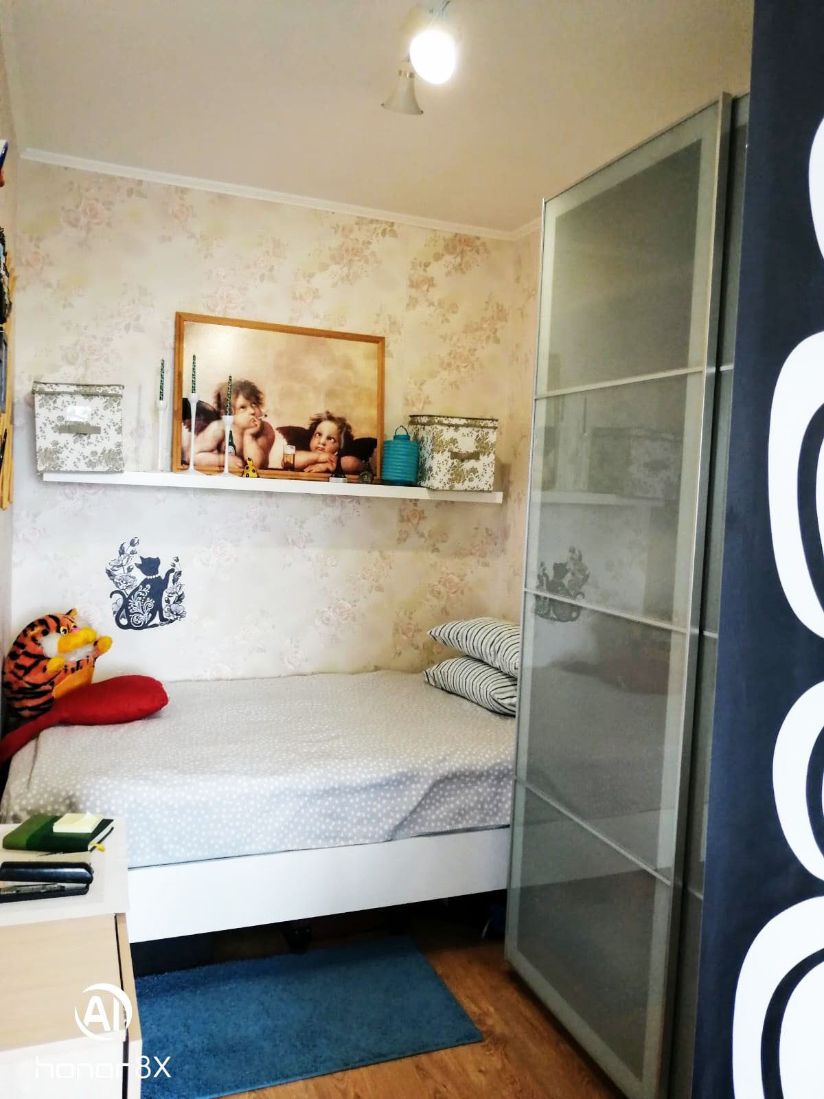 В квартире сделан качественный ремонт, кухня объединена с гостиной, где отдельно выделена спальная зона. Фактическая площадь квартиры 32.7 м2.