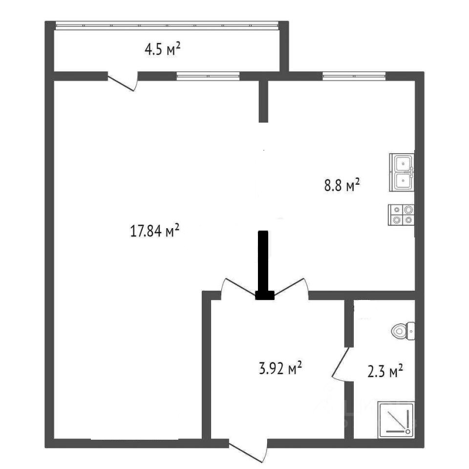 Общая площадь 33 м2