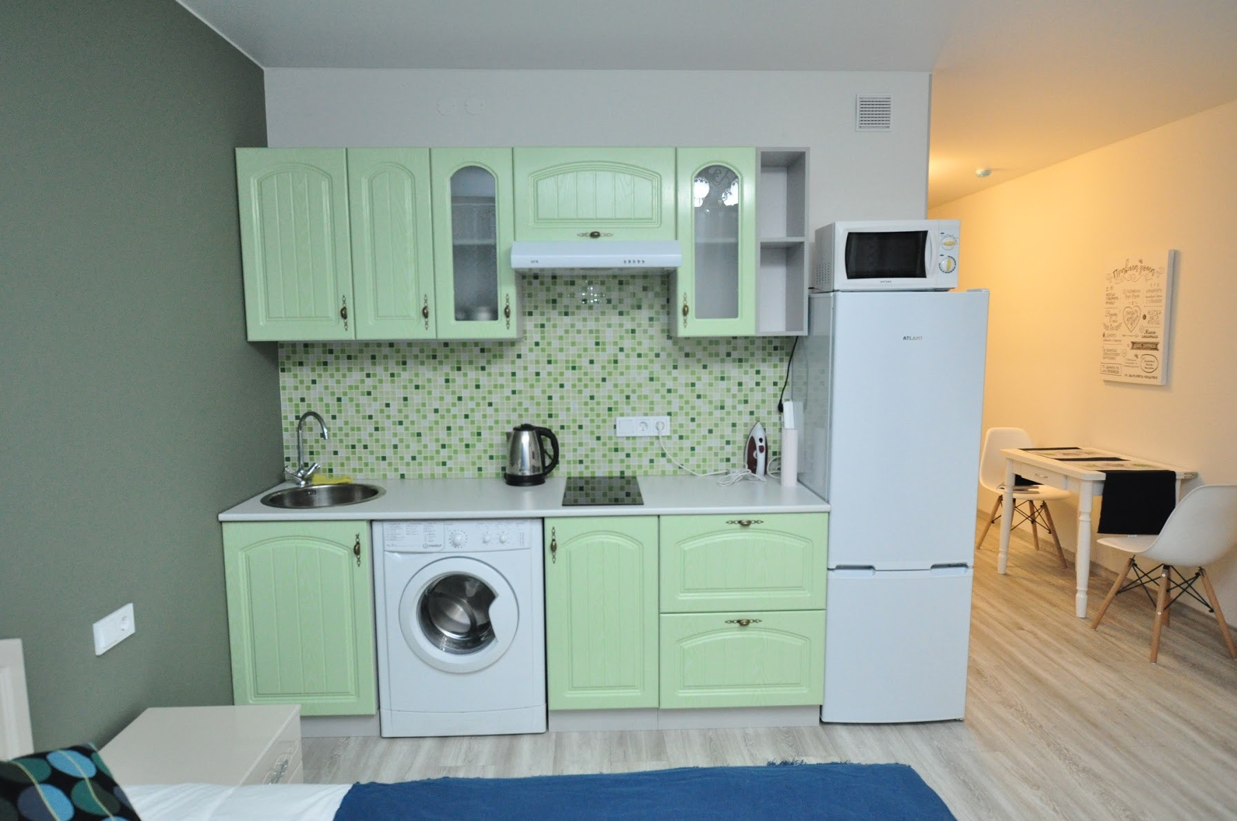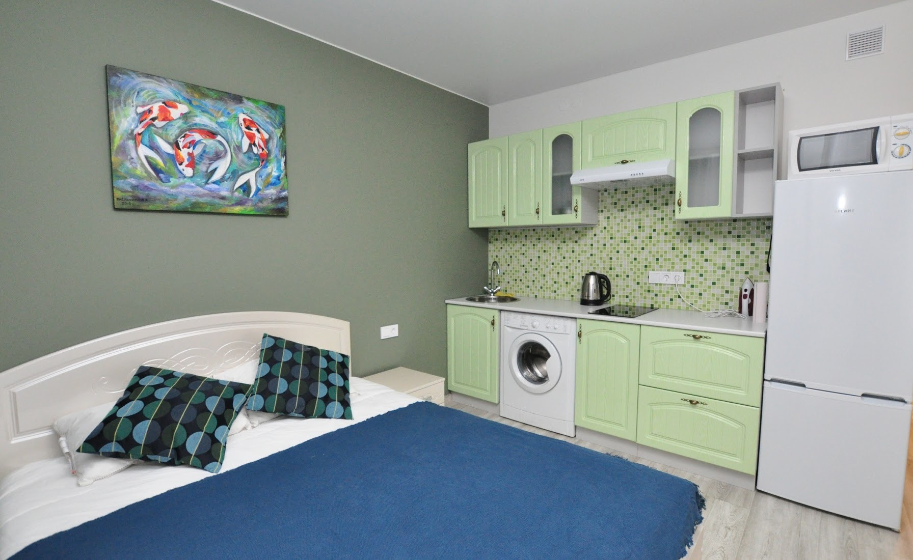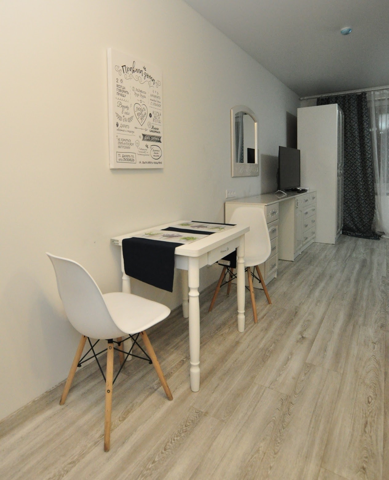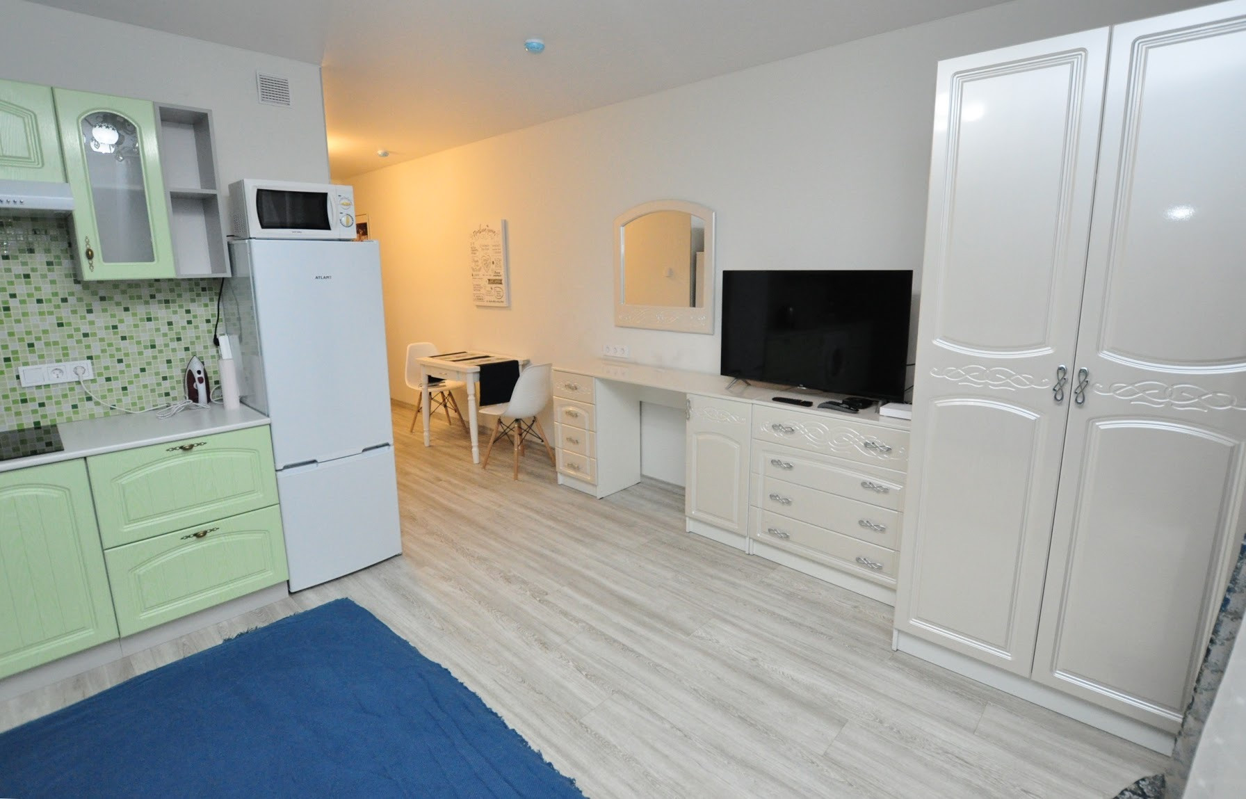 Отличная мебелировка, отличный отельный матрас и постельное белье.