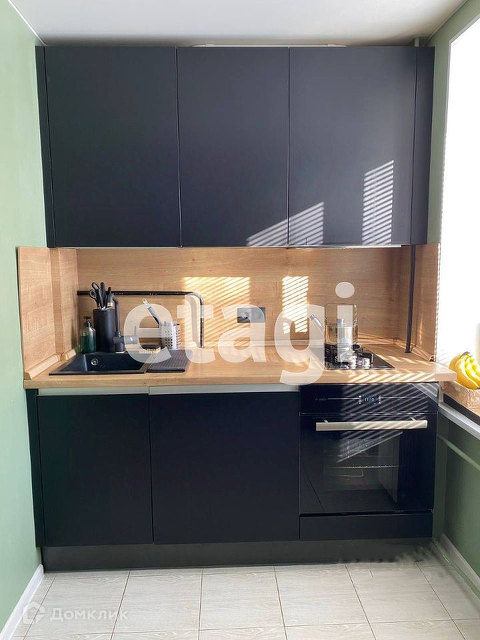 Встроенная кухня со столешницей под дерево по индивидуальному заказу со шкафами под стиральную машину, духовой шкаф; встроенная вытяжка и варочная панель (остаются).