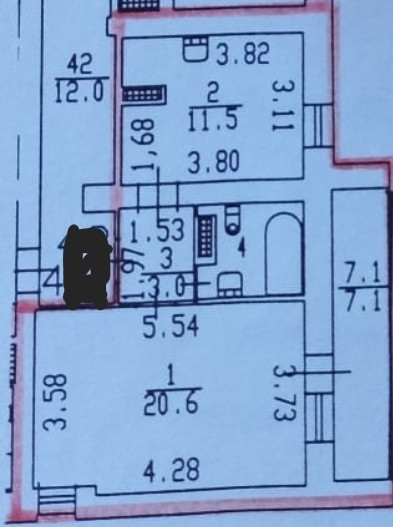 Жилая площадь 20.8 м2