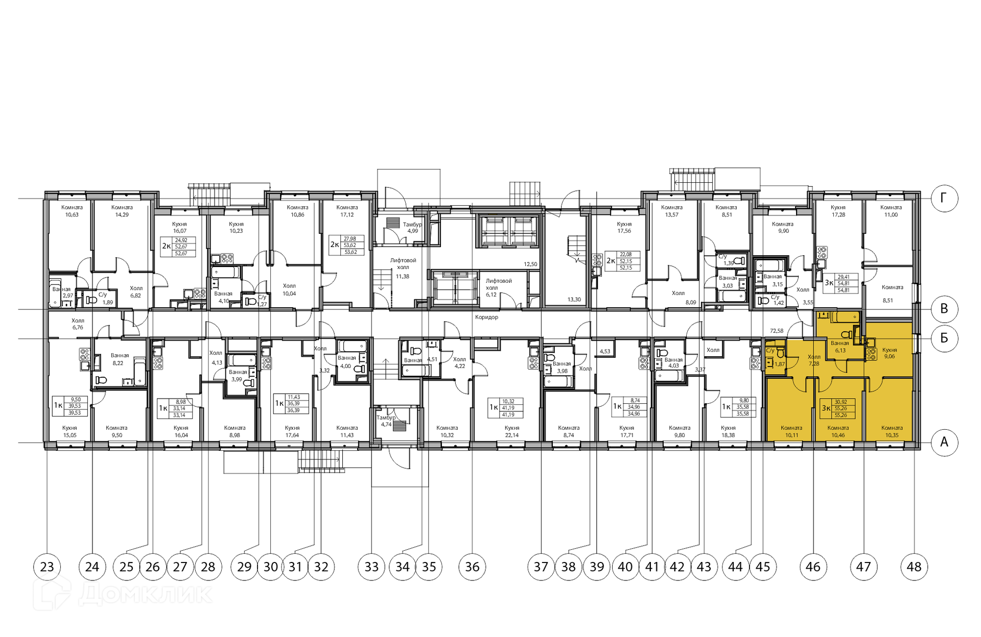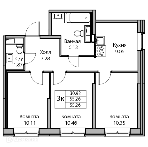 Общая площадь 55.26 м2