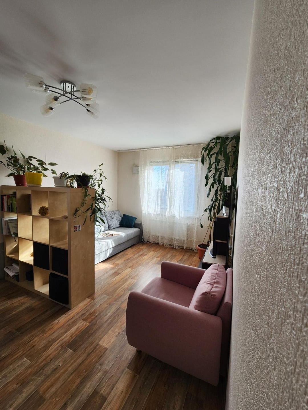 В большой  комнате 2 окна, что даёт возможность разделения на 2 комнаты.