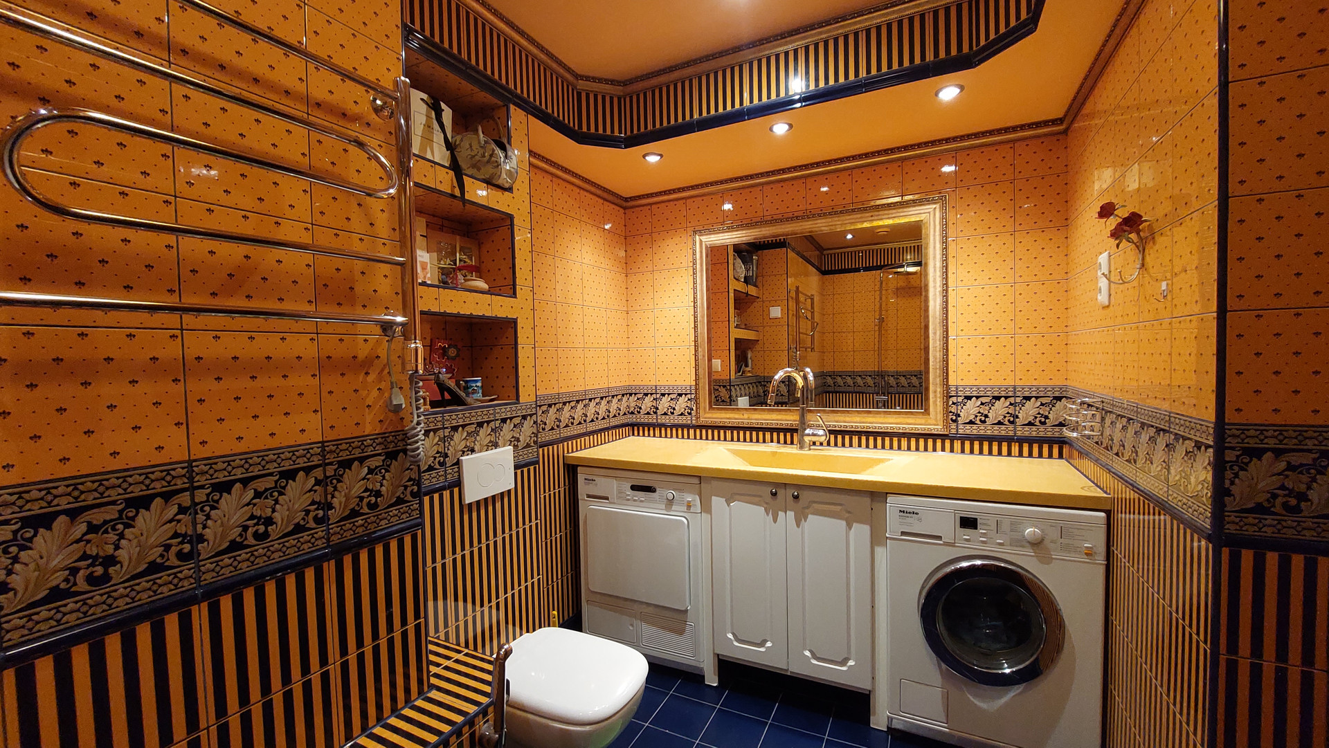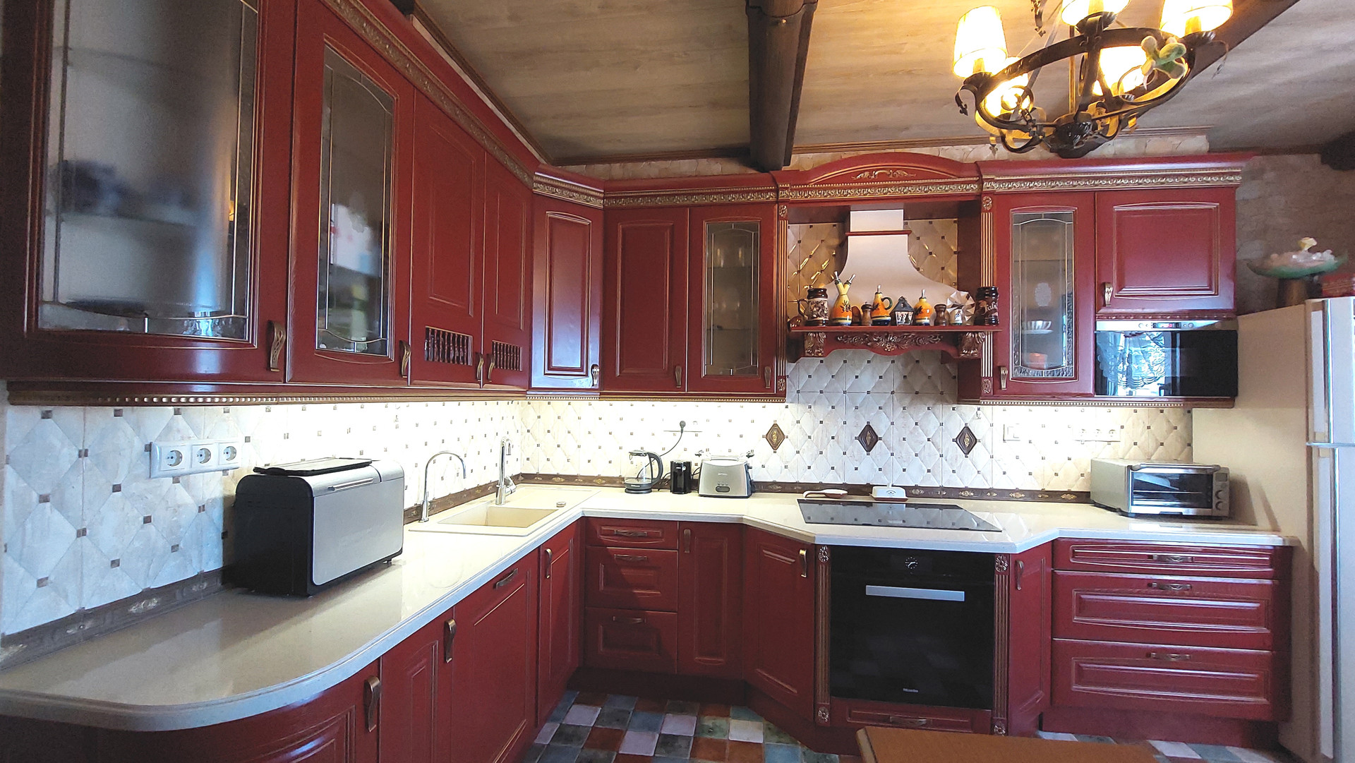 Покупателю остается кухонный гарнитур со встроенной техникой (духовой шкаф и посудомоечная машинка Miele, варочная панель Electrolux, холодильник sharp), а также мебель в комнатах.