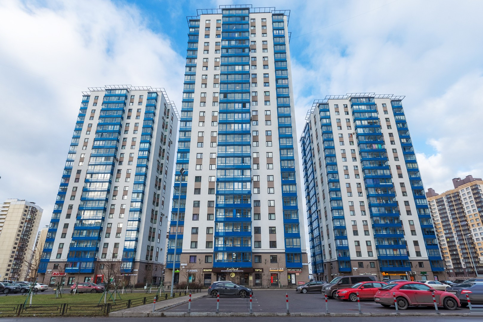 Комплекс расположен в одном из самых экологически чистых районов Петербурга, в пешей доступности находятся парки (Южно-Приморский, Полежаевский, Новознаменка, Александрино), всего 2 км от благоустроенной набережной Финского залива, к которому можно прогуляться по прекрасной пешеходной дороге, подходящей для катания на роликах, велосипедах, самокатах.