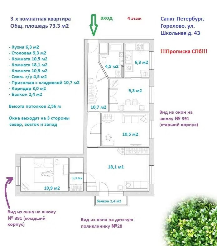 Адрес: СПб, Горелово, Школьная улица, д.43. Показ по воцап собственником.