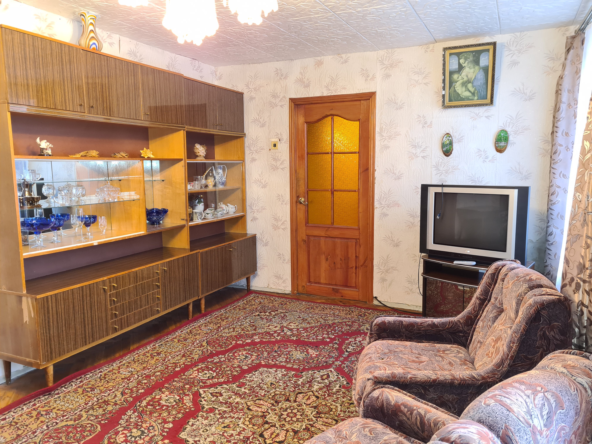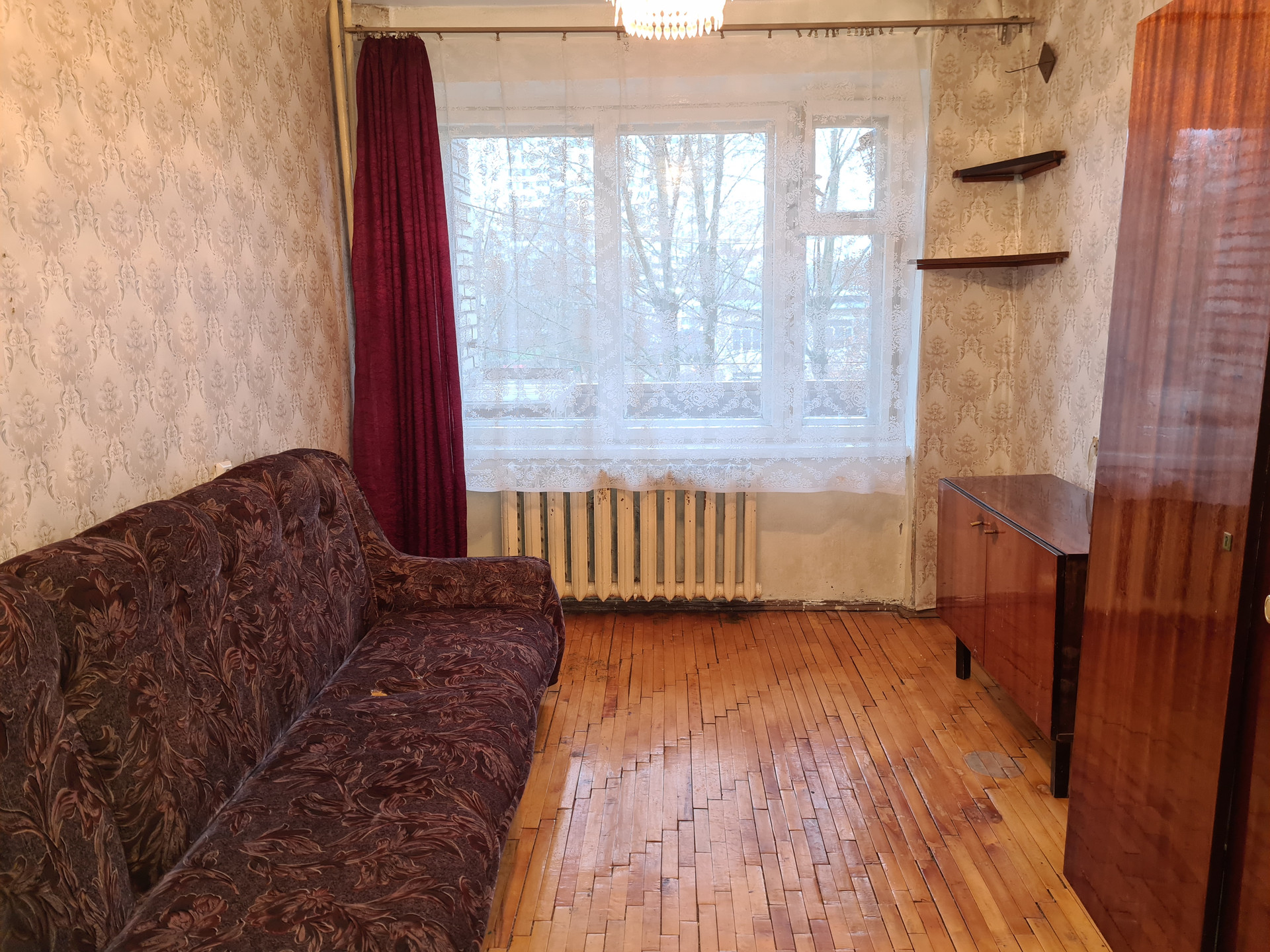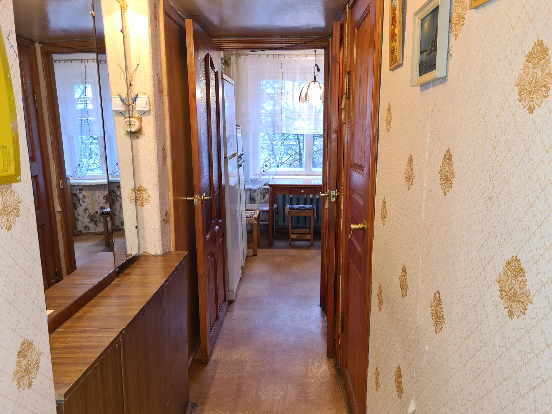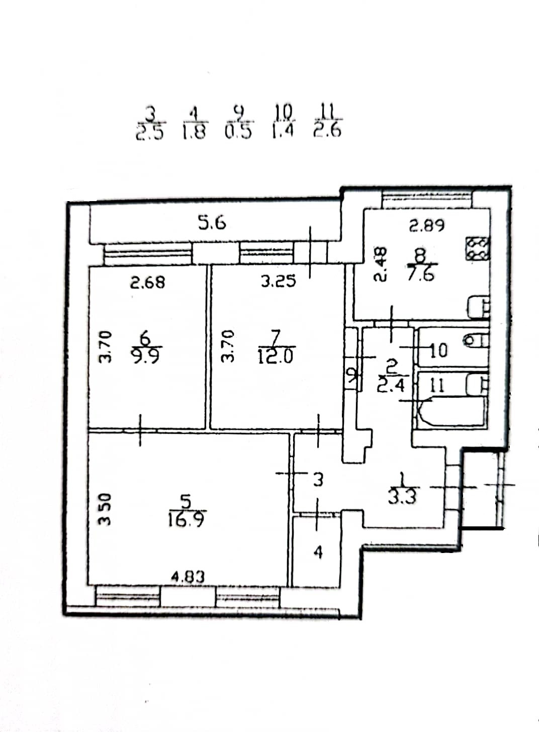 •    Общая площадь 60.9 кв.м. + 5.6 кв.м. лоджия + 1.5 кв.м. тамбур в квартиру (Итого общая площадь 68 кв.м.), комнаты (17 кв.м. +10 кв.м.) – смежные, 12 кв.м. - изолированная кв.м., кухня 7.6 кв.м., кладовая 1.8 кв.м. санузел раздельный. Дверь железная. Этаж 3-й 9-ти этажного кирпичного дома 1975 года постройки.