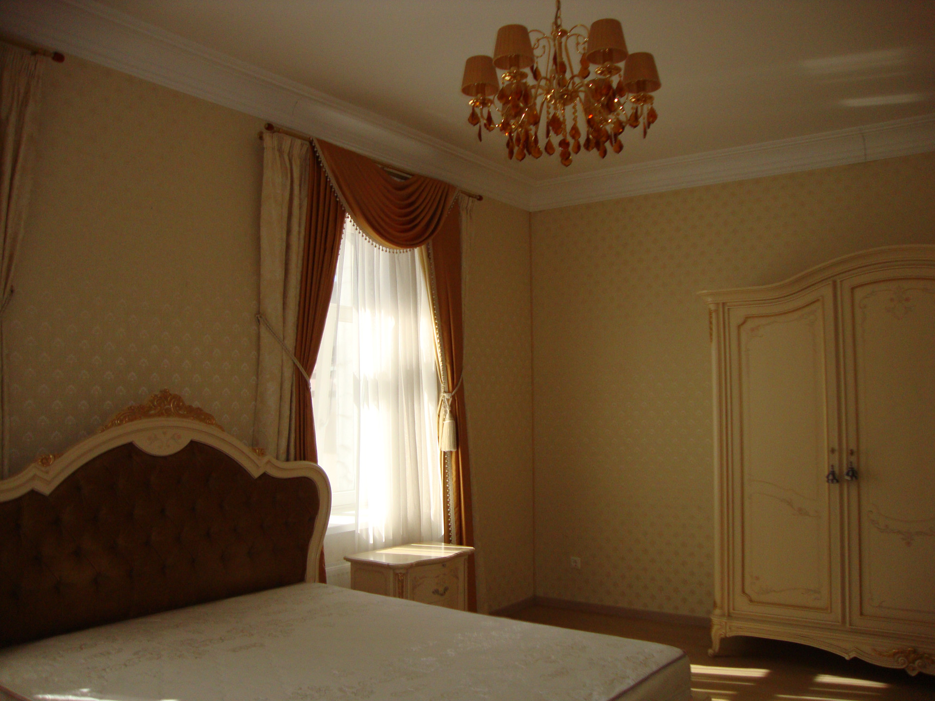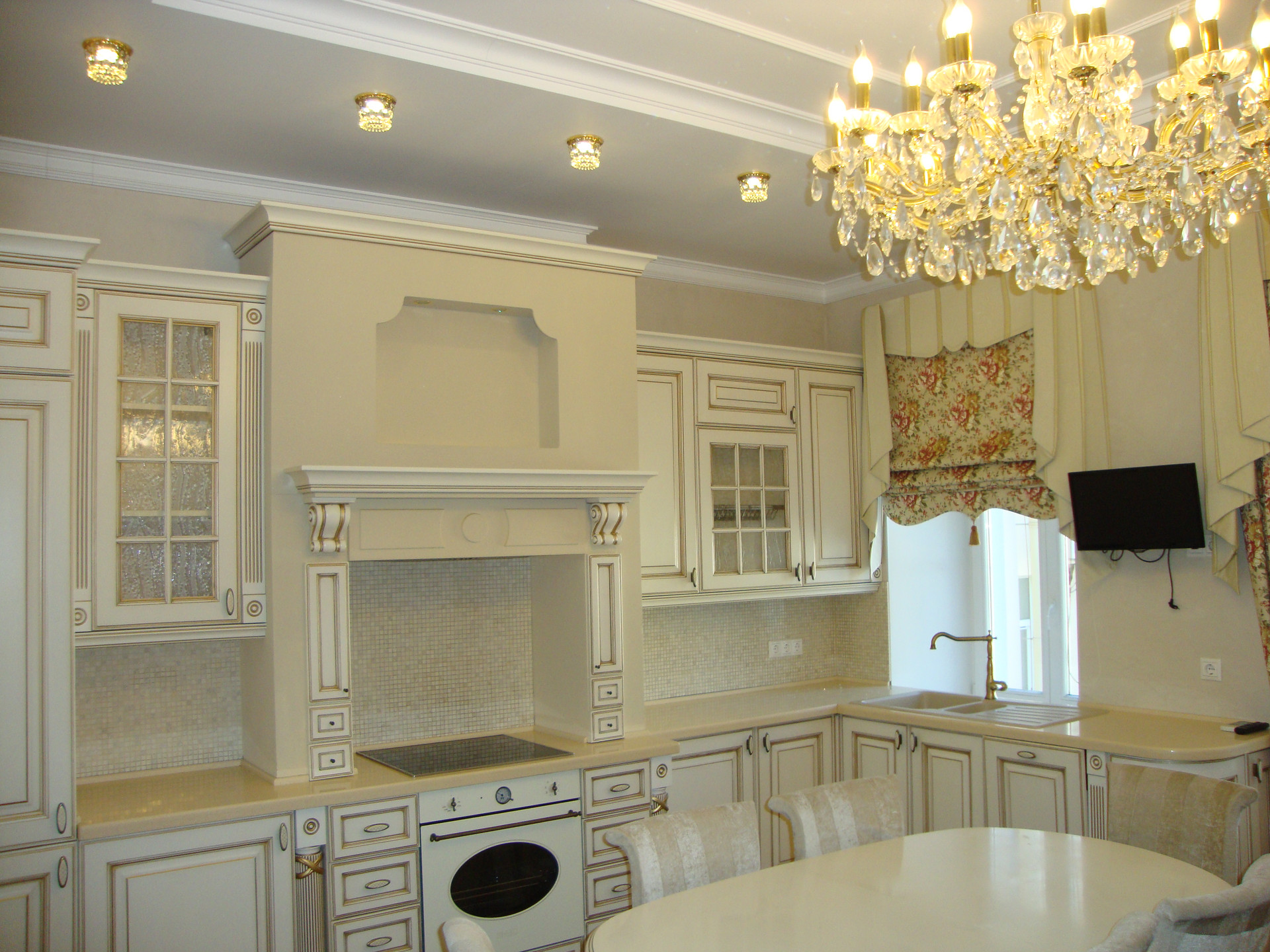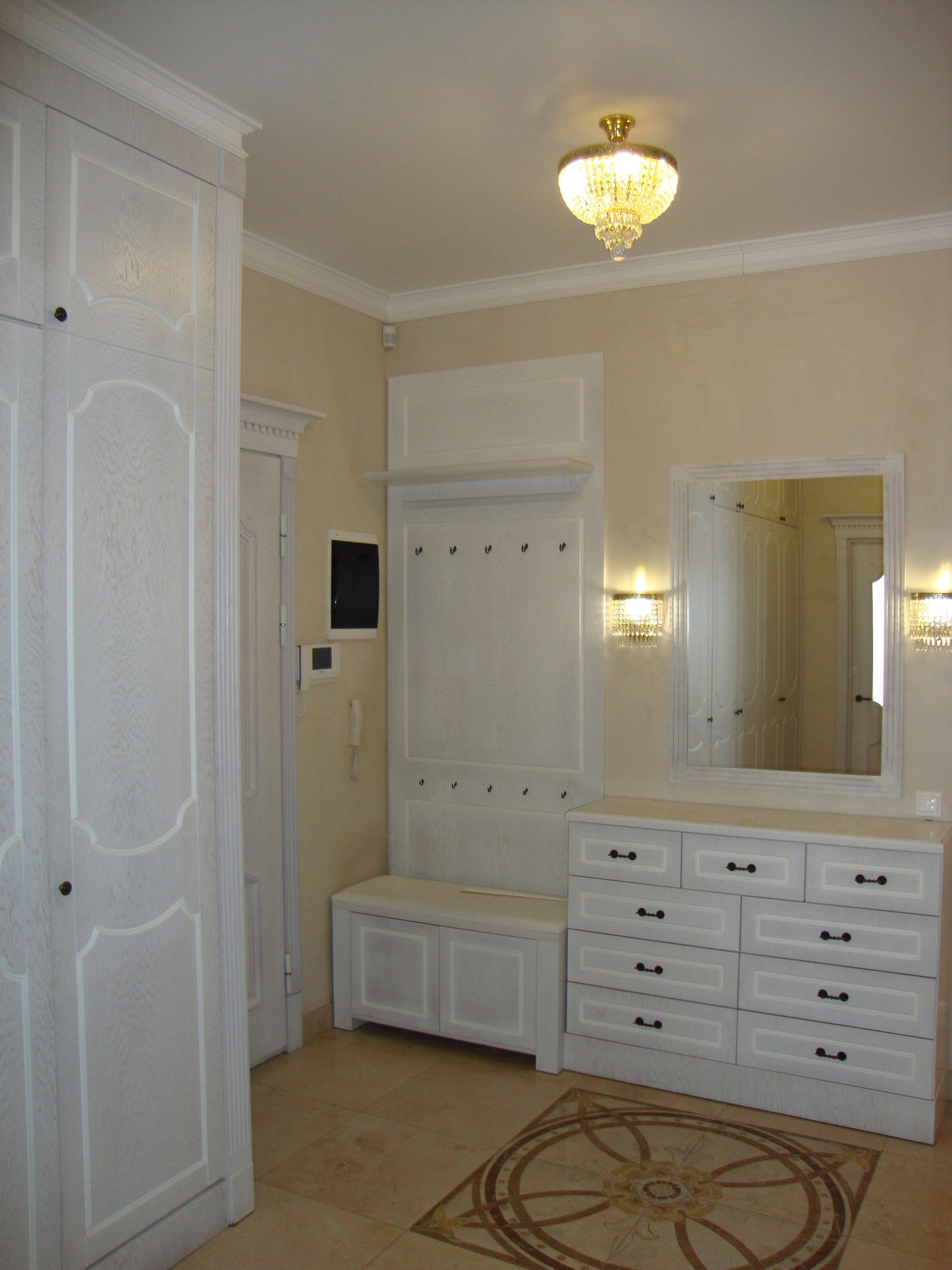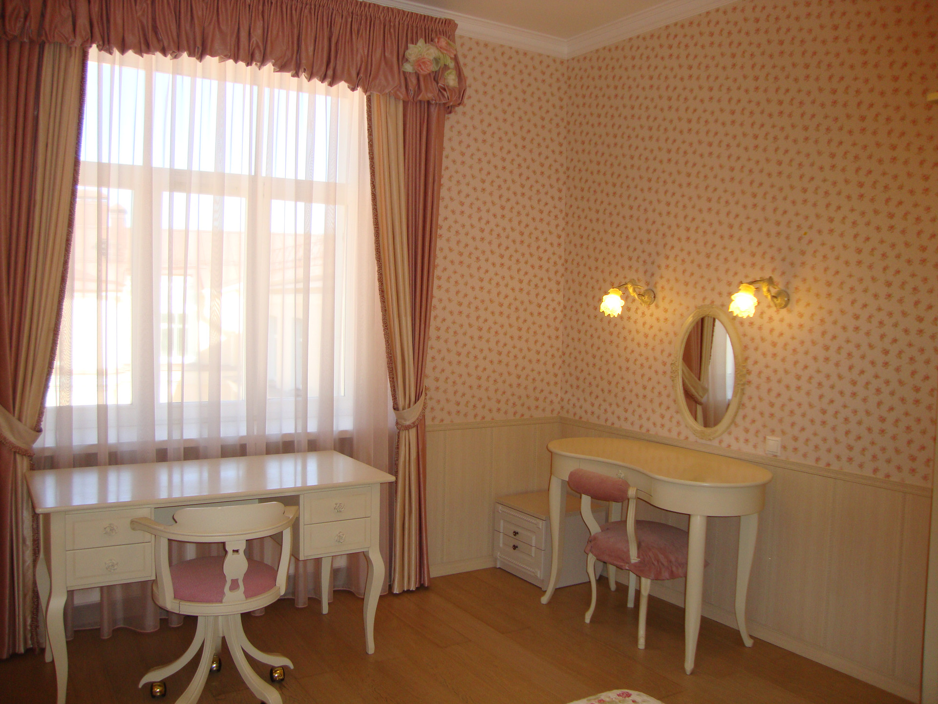 В квартире выполнен качественный, дизайнерский ремонт в классическом стиле. Камин: выполнен из натурального оникса, с аксессуарами из латуни с элементами оникса. Над Камином зеркало из массива (Италия). Стены: Кухня-Гостиная и Холл на 1 и 2 этажах классическая венецианская штукатурка, натуральные текстильные обои производства Италия, и обои других европейских производителей. Пол: в гостиной Мозаичный наборный паркет, в остальных комнатах паркетная доска, в Холле на 1 этаже и СУ плитка (Испания), установлены тёплые полы. Сантехника и аксессуары Итальянские: сантехника премиум-класса «Migliore», «Franke Old England». Ограждение в душевой на 1 этаже производство Германия. Установлен мощный угольный очиститель воды. Есть водонагреватель (на случай отключения горячего водоснабжения). В Холле на 2 этаже и в основной Спальне сделаны полки с обрамлением из натурального гипса. На лестнице фреска, выполненная Петербургской художницей, обрамлена фреска гипсом. Лестница и двери выполнены полностью из массива на частном предприятии Петербурга, аксессуары к дверям: Европа. Гардеробная: шведские гардеробные системы «Elfa». Высокие фигурные потолки. Люстры в Кухне-Гостиной Австрия, в других комнатах европейских производителей. Кухня производство «Верона». Совместное производство Италия-Россия: фасады Италия, сборка российская. Вся остальная мебель: Италия «Valderamobili». В спальне с ручной росписью. В Холле мебель (комод, вешалка, встроенный шкаф) то же производство, что и двери. Квартира двухсторонняя очень светлая, благодаря большому количеству окон. Подоконники выполнены из искусственного камня. Во всех комнатах установлены кондиционеры «MITSUBISHI».