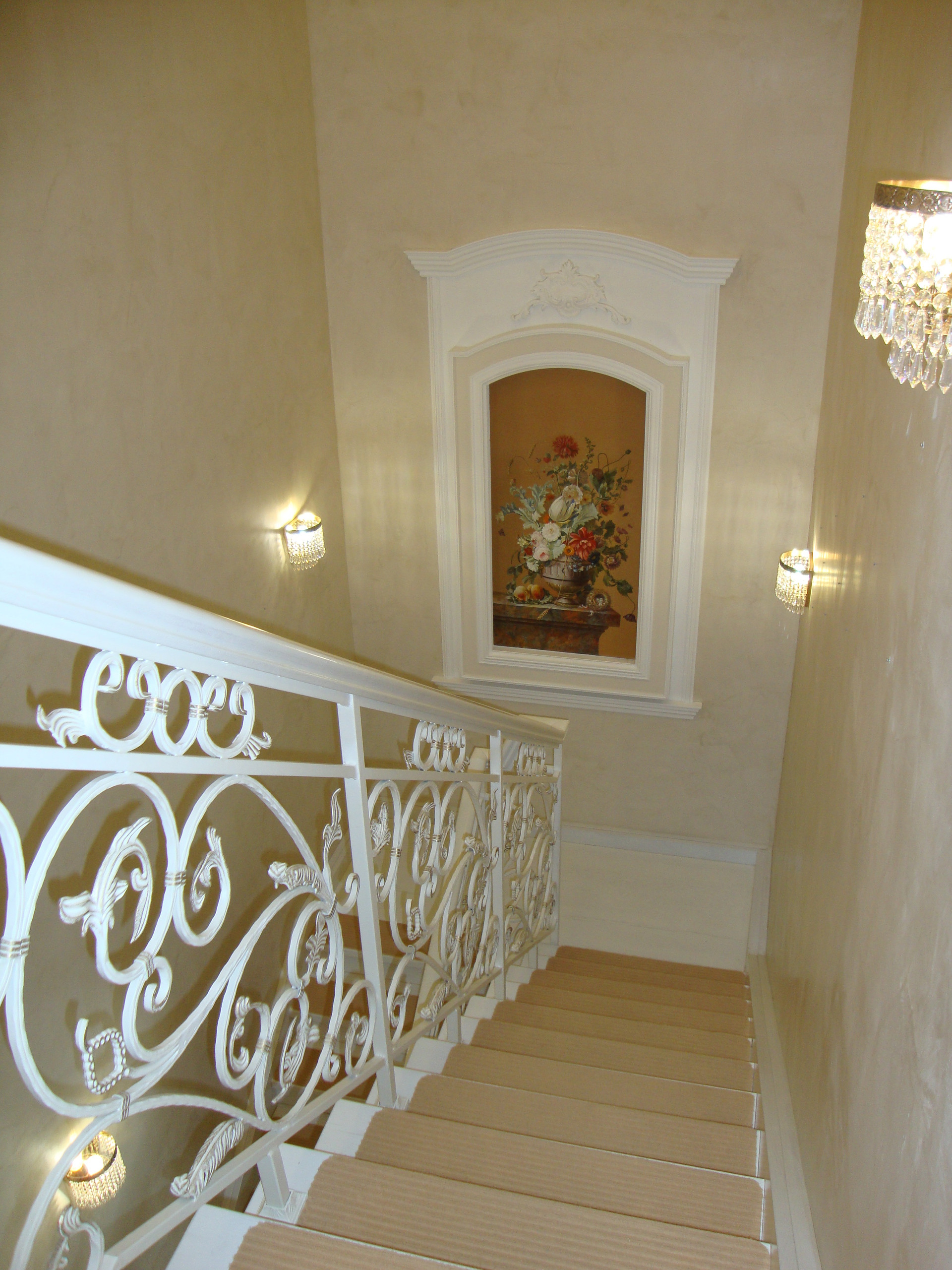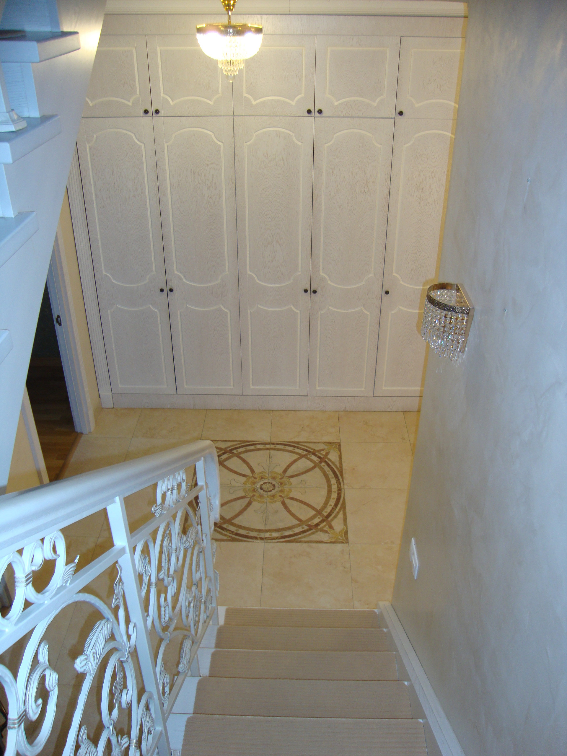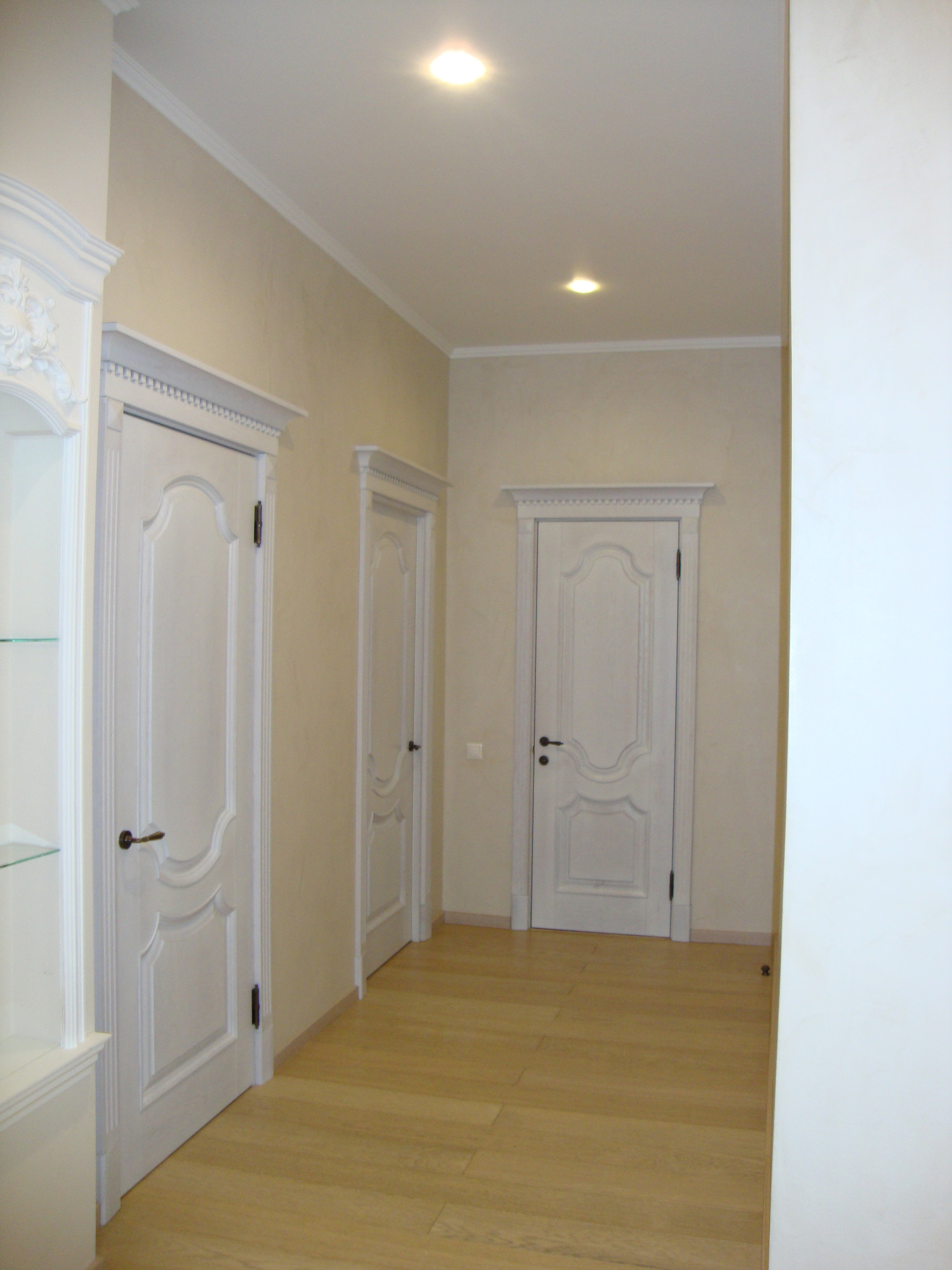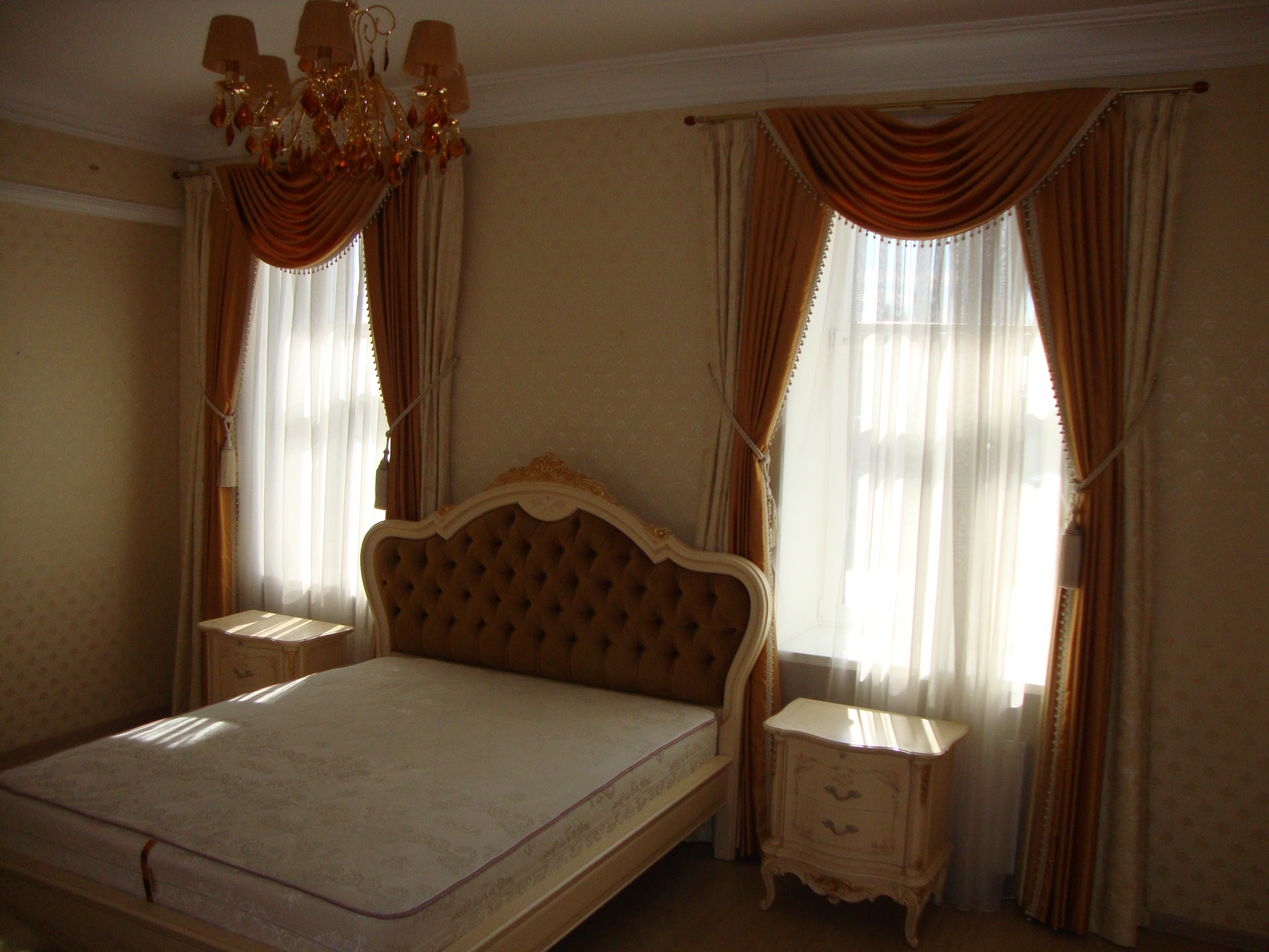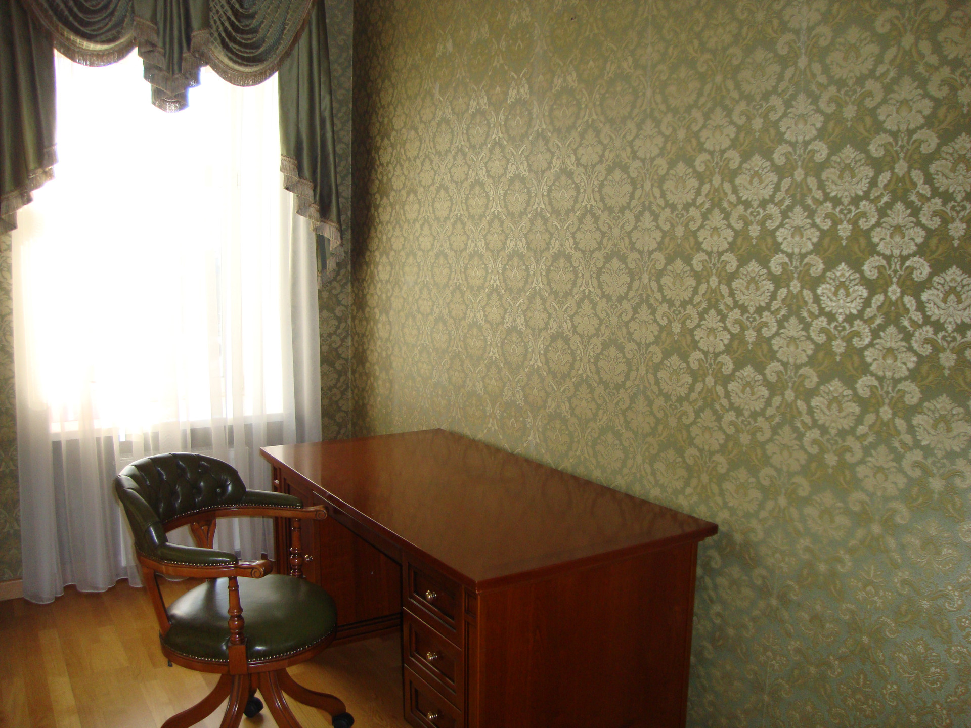 В квартире выполнен качественный, дизайнерский ремонт в классическом стиле. Камин: выполнен из натурального оникса, с аксессуарами из латуни с элементами оникса. Над Камином зеркало из массива (Италия). Стены: Кухня-Гостиная и Холл на 1 и 2 этажах классическая венецианская штукатурка, натуральные текстильные обои производства Италия, и обои других европейских производителей. Пол: в гостиной Мозаичный наборный паркет, в остальных комнатах паркетная доска, в Холле на 1 этаже и СУ плитка (Испания), установлены тёплые полы. Сантехника и аксессуары Итальянские: сантехника премиум-класса «Migliore», «Franke Old England». Ограждение в душевой на 1 этаже производство Германия. Установлен мощный угольный очиститель воды. Есть водонагреватель (на случай отключения горячего водоснабжения). В Холле на 2 этаже и в основной Спальне сделаны полки с обрамлением из натурального гипса. На лестнице фреска, выполненная Петербургской художницей, обрамлена фреска гипсом. Лестница и двери выполнены полностью из массива на частном предприятии Петербурга, аксессуары к дверям: Европа. Гардеробная: шведские гардеробные системы «Elfa». Высокие фигурные потолки. Люстры в Кухне-Гостиной Австрия, в других комнатах европейских производителей. Кухня производство «Верона». Совместное производство Италия-Россия: фасады Италия, сборка российская. Вся остальная мебель: Италия «Valderamobili». В спальне с ручной росписью. В Холле мебель (комод, вешалка, встроенный шкаф) то же производство, что и двери. Квартира двухсторонняя очень светлая, благодаря большому количеству окон. Подоконники выполнены из искусственного камня. Во всех комнатах установлены кондиционеры «MITSUBISHI».
