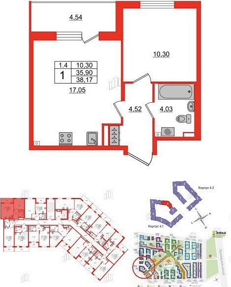 Общая площадь 35.9 м2