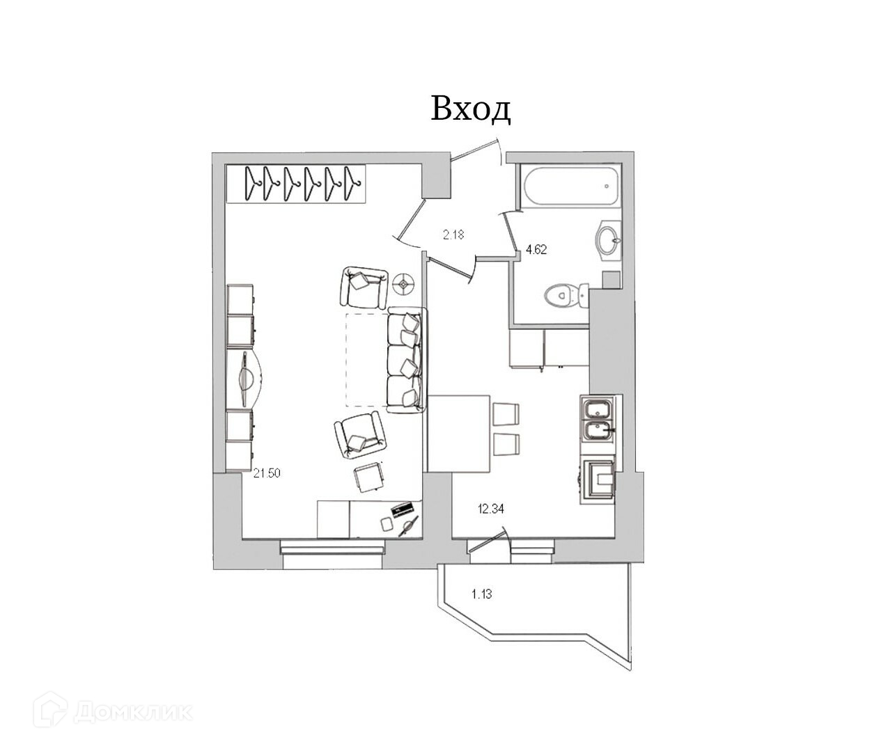 Площадь кухни 12.34 м2