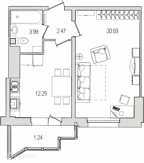 Жилая площадь 20.69 м2