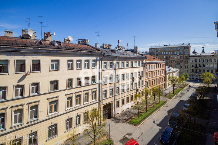 2-комнатная квартира общей площадью 47 м² на пятом этаже. Площадь комнат - 19м² и 10 м². Окна выходят на северо-восток - на тихую одностороннюю 6-ю Советскую улицу - с панорамным видом на крыши и купола Смольного собора вдалеке. В квартире выполнен качественный ремонт, установлены стеклопакеты и новая кухня. На полу - оригинальный паркет.