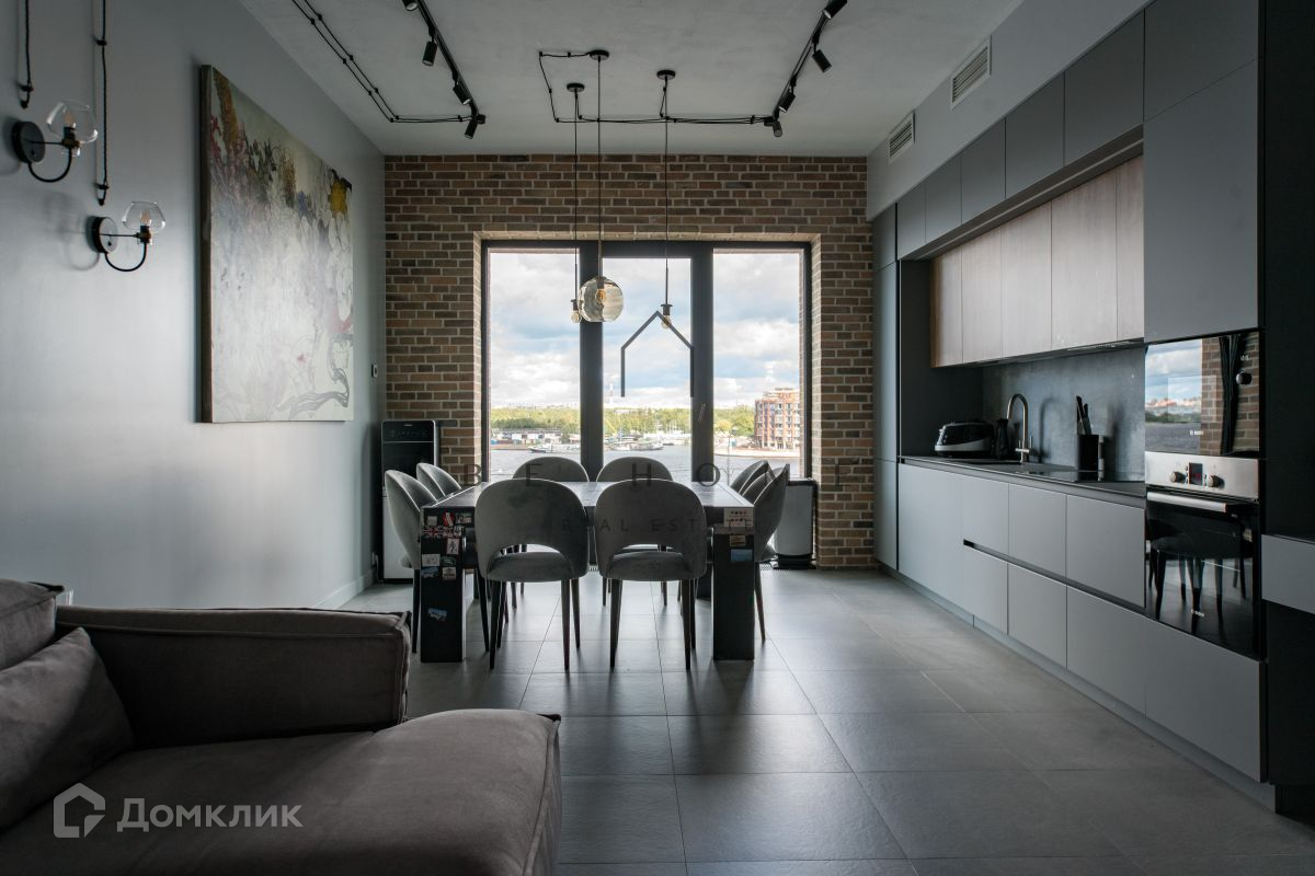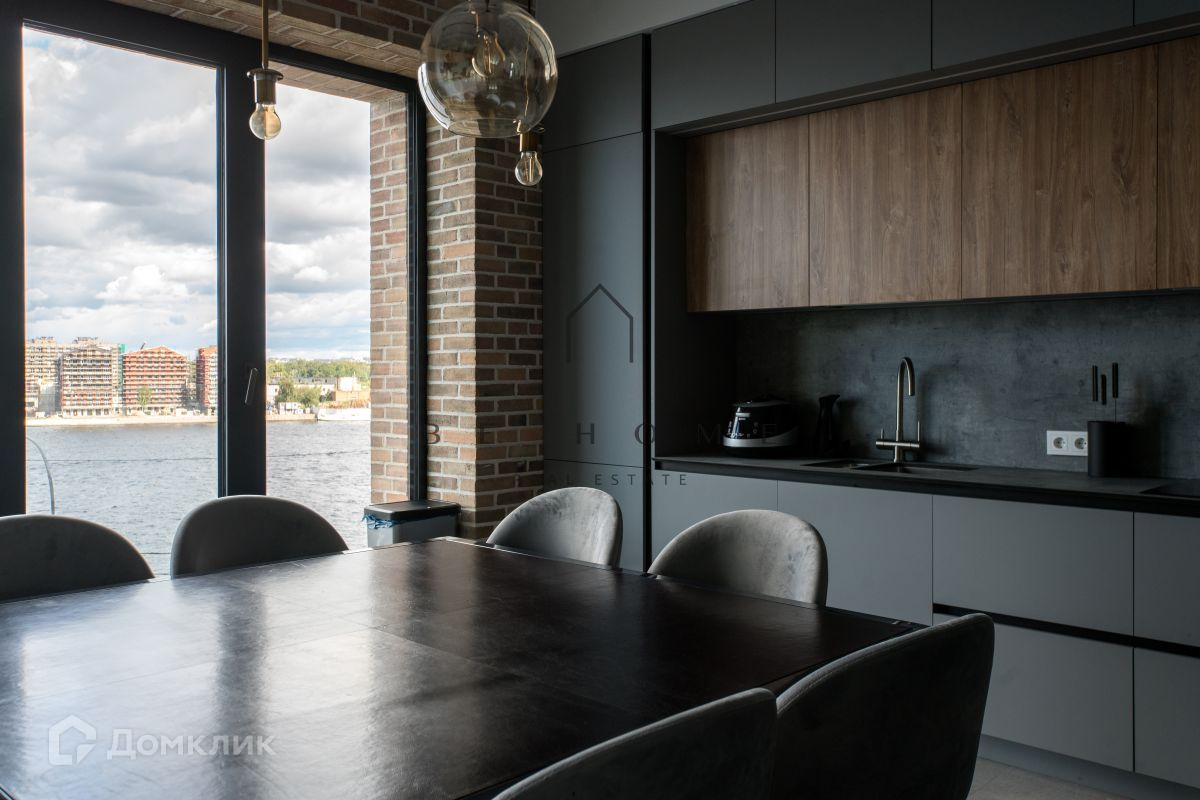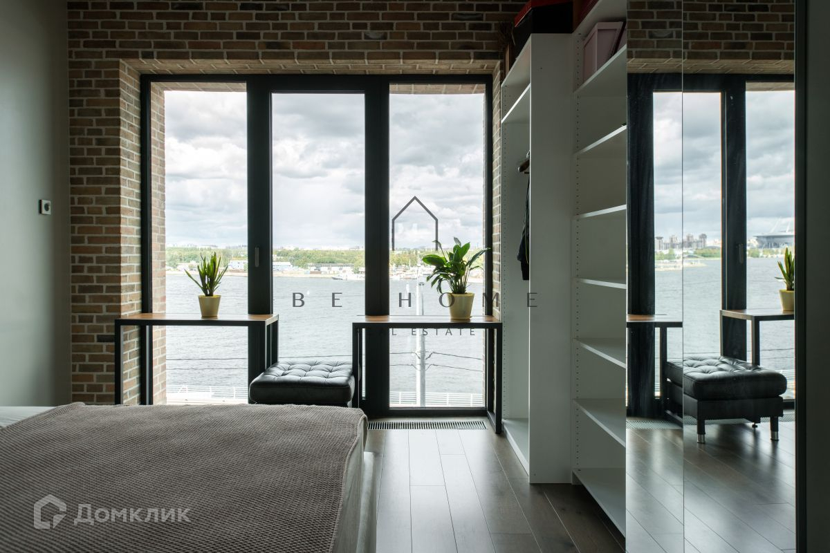 Просторная четырёхкомнатная квартира в стиле лофт с панорамными окнами в доме бизнес-класса Docklands. С потрясающим видом на реку Нева и стадион Газпром Арена.