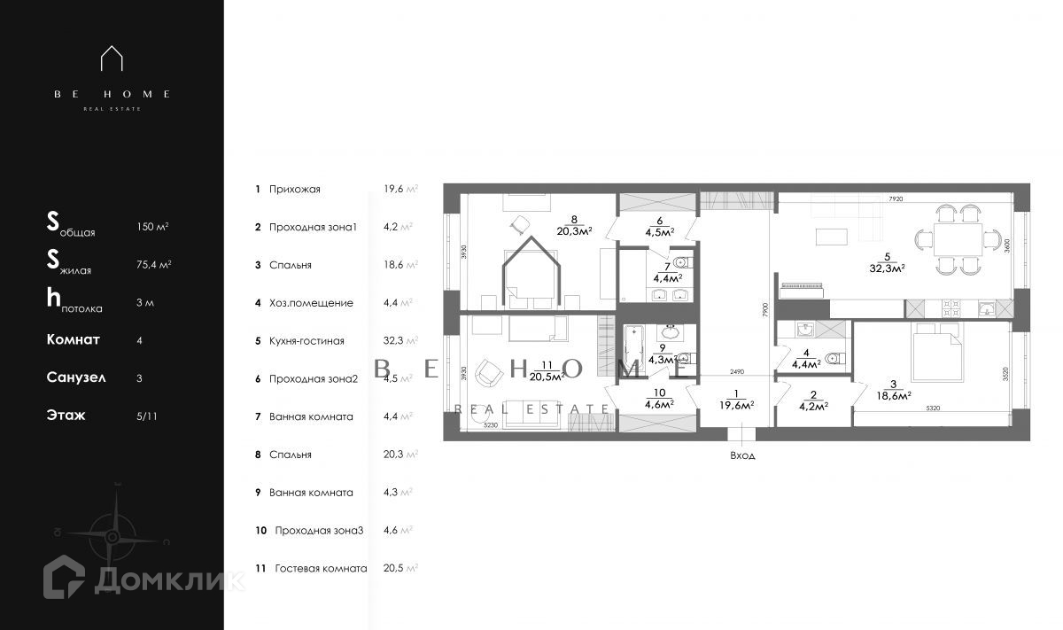 Общая площадь 146.3 м2