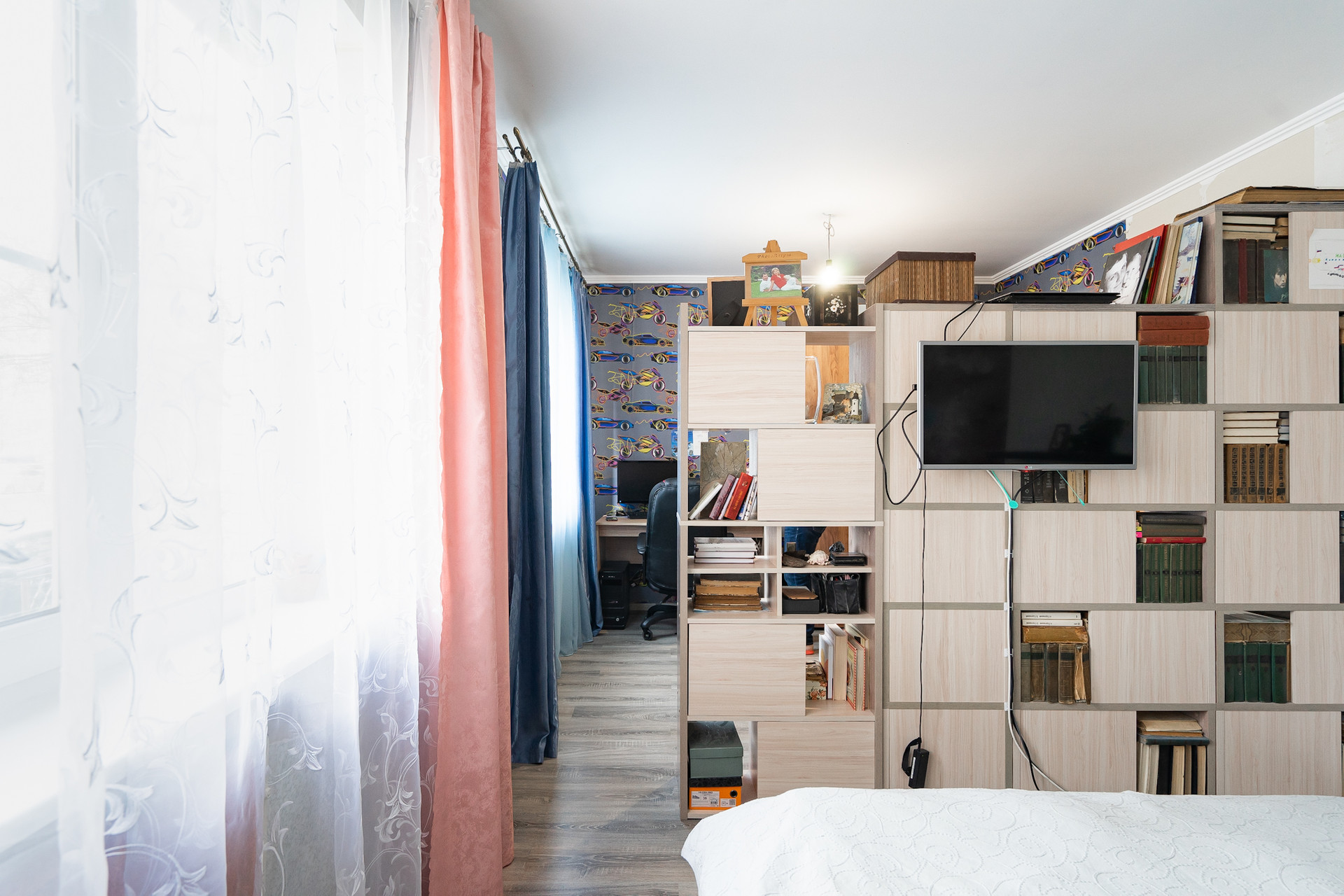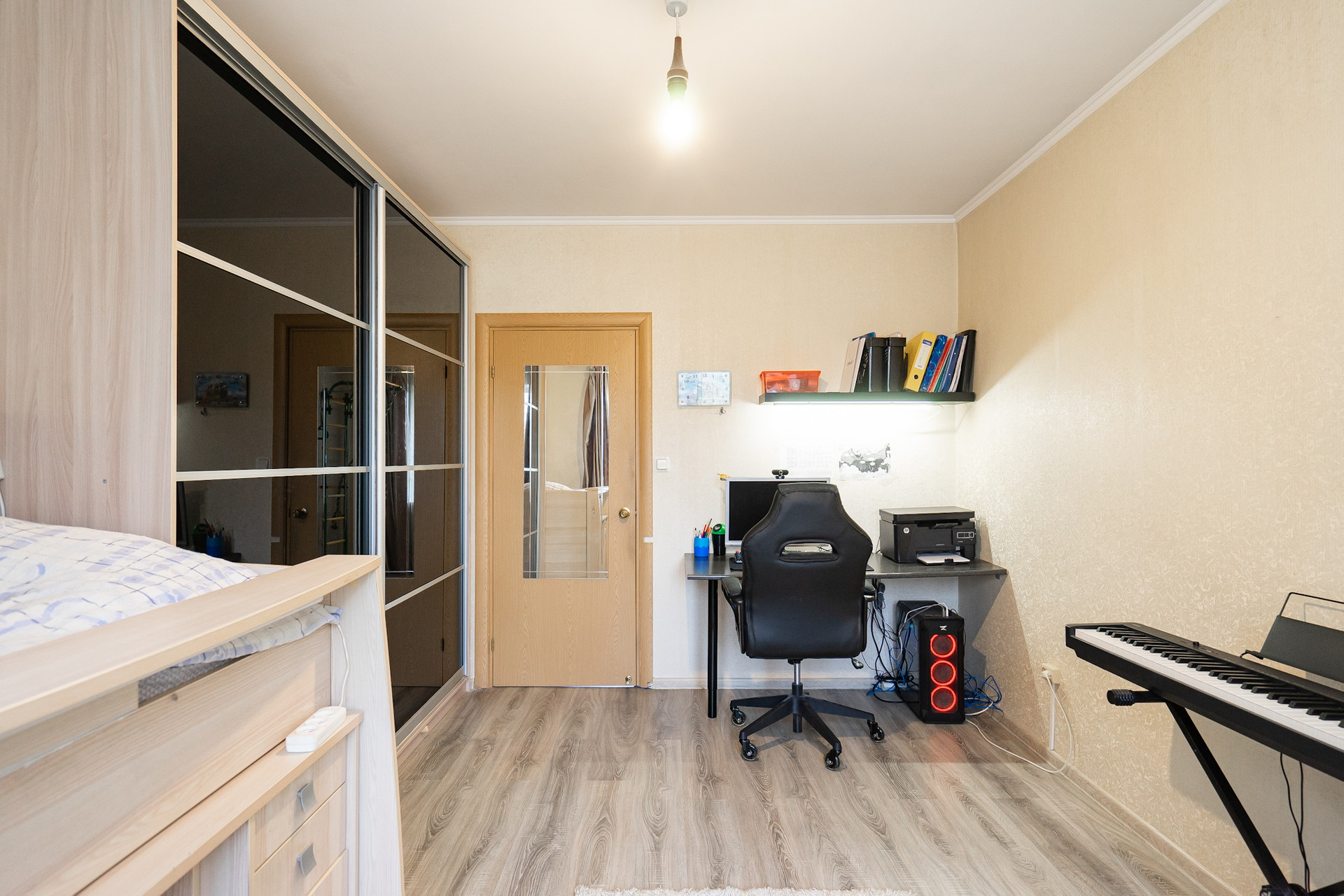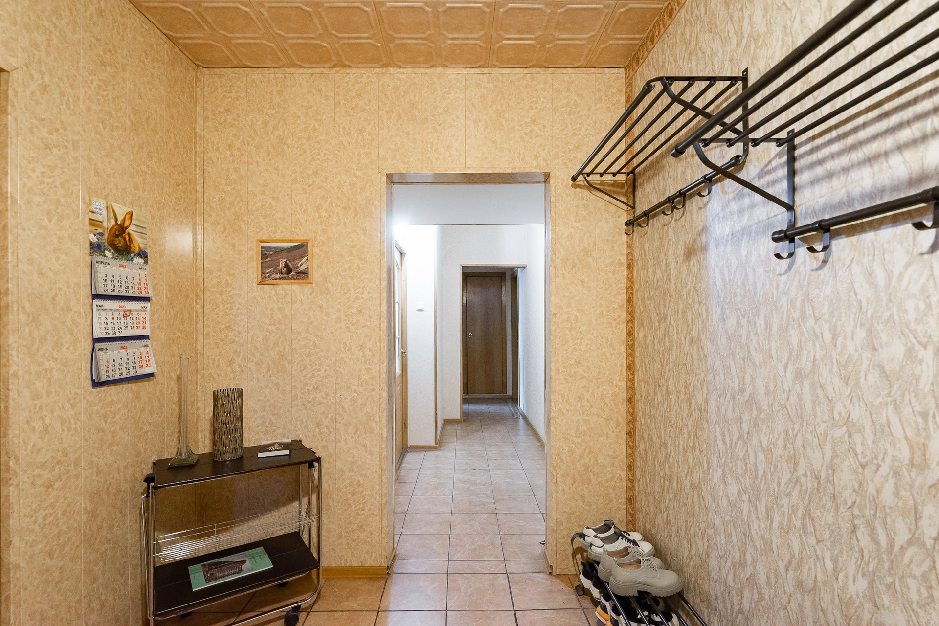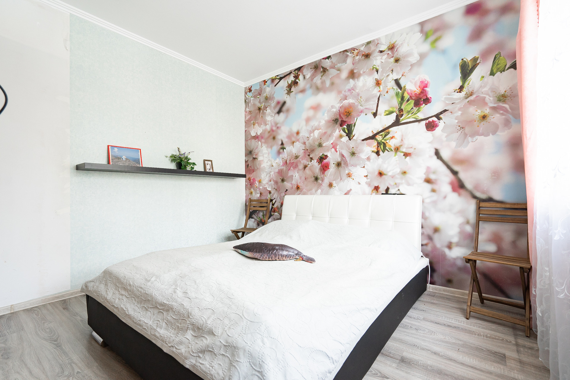 Квартира на первом непроблемном этаже. Он высокий, 2 с лишним метра от земли и у окон палисадники, поэтому перед окнами никто не ходит. Пол тёплый.