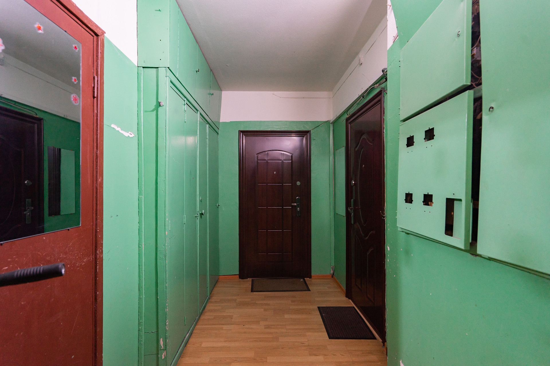 Часть парадной отгорожена на 2 квартиры, оборудованы шкафы для хранения вещей, инструментов и т.д.