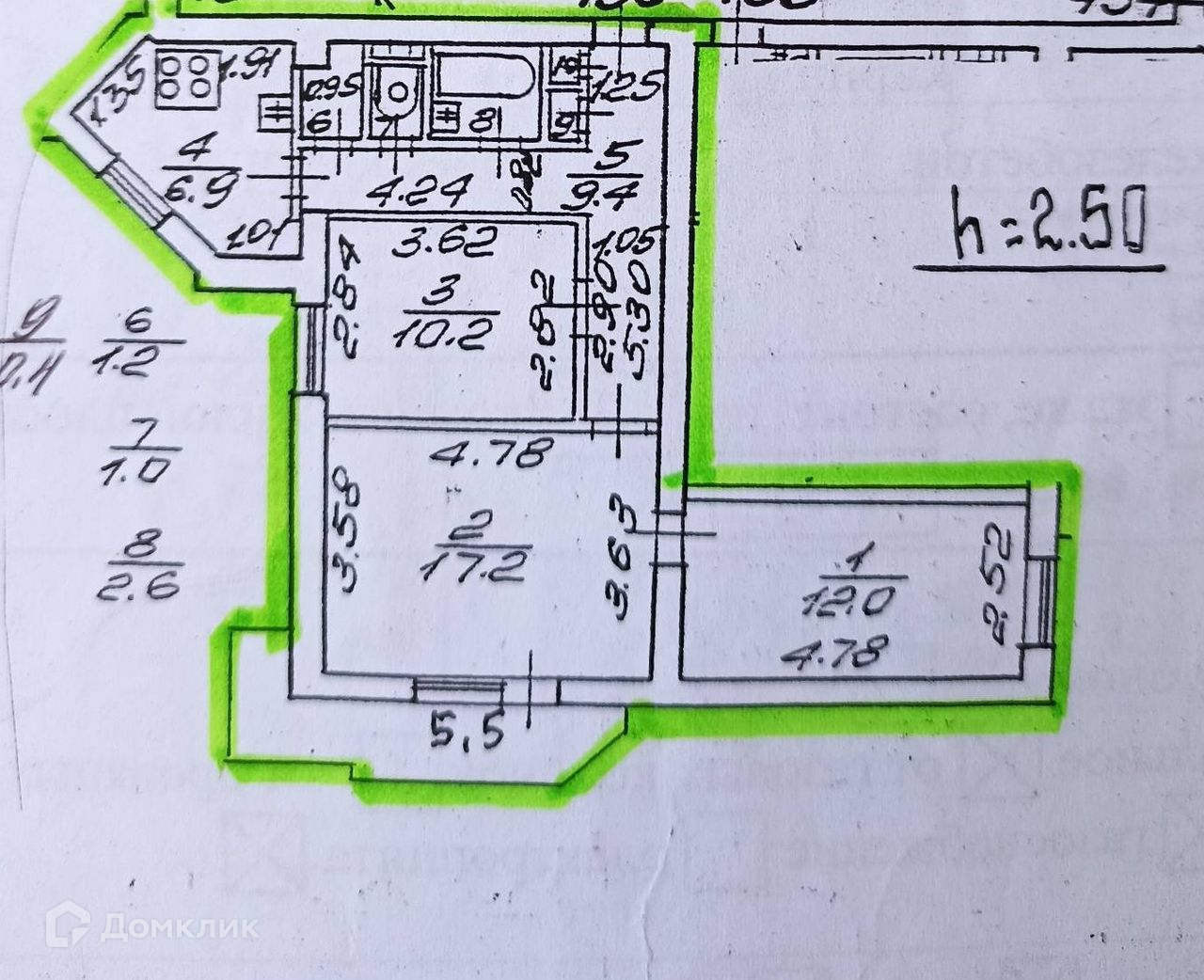 Высота потолков 2.5 м