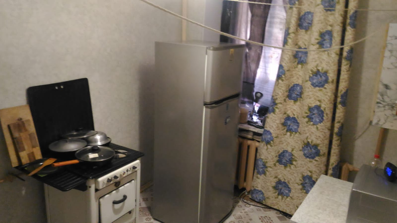 Дом кирпичный, Первый этаж с балконом. Окна выходят во двор. Комнаты изолированные. Санузел раздельный. Квартира требует ремонта.