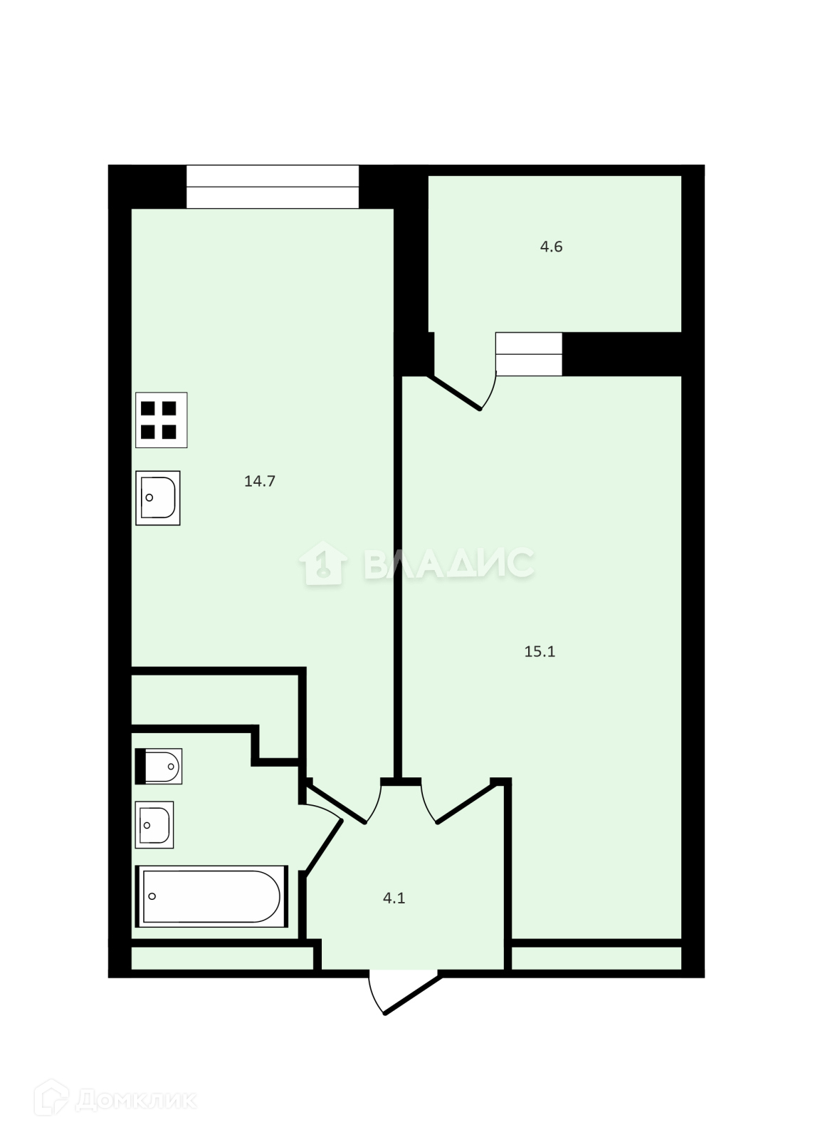 Жилая площадь 15.1 м2