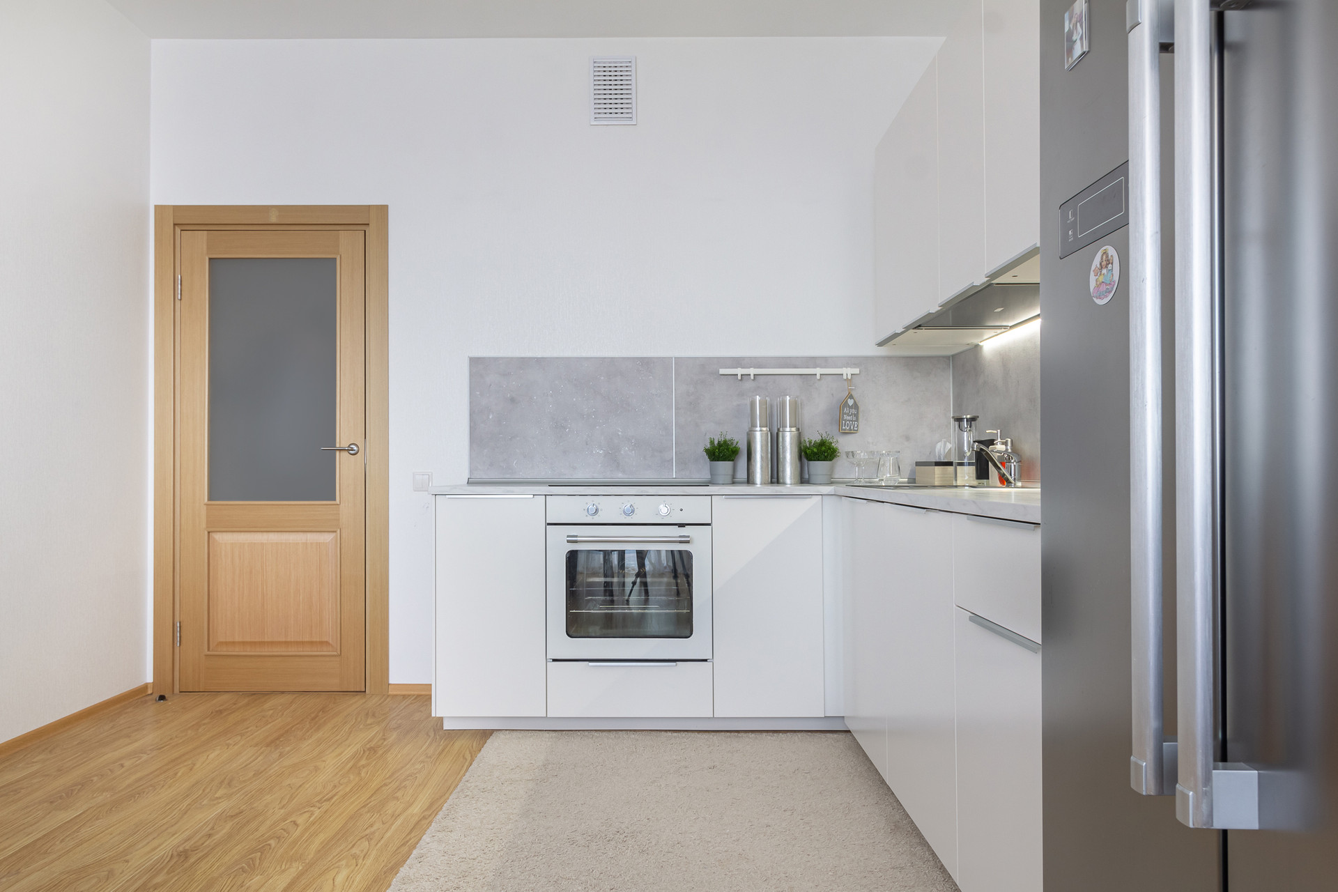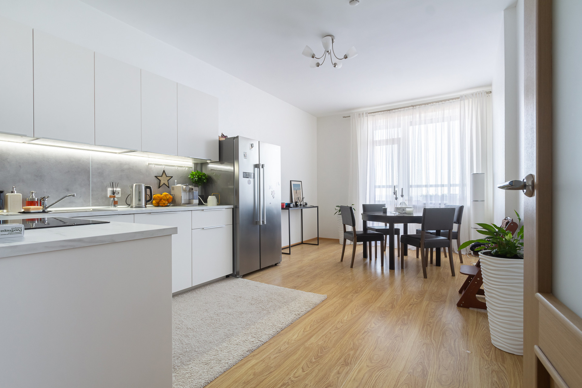 Кухня-гостиная 21 кв.м, две спальни и уютная детская комната, просторная ванная комната, гостевой санузел.