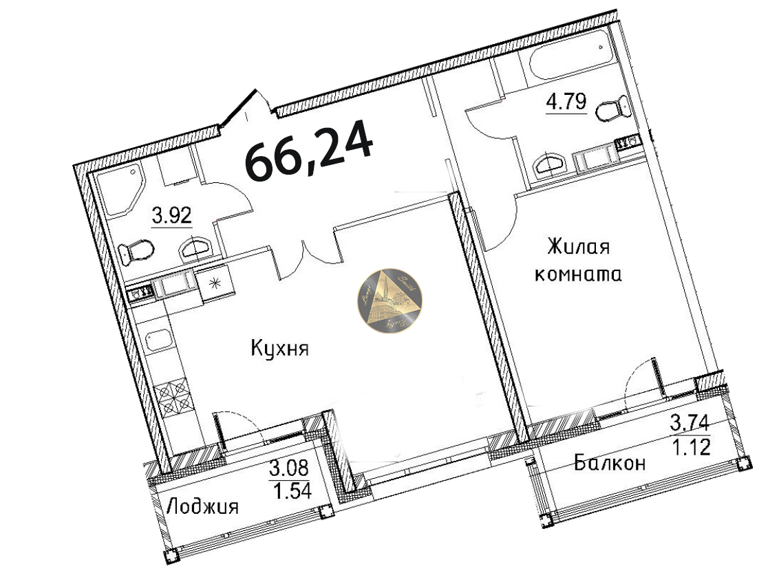 - Общая площадь квартиры 66,24 м2.