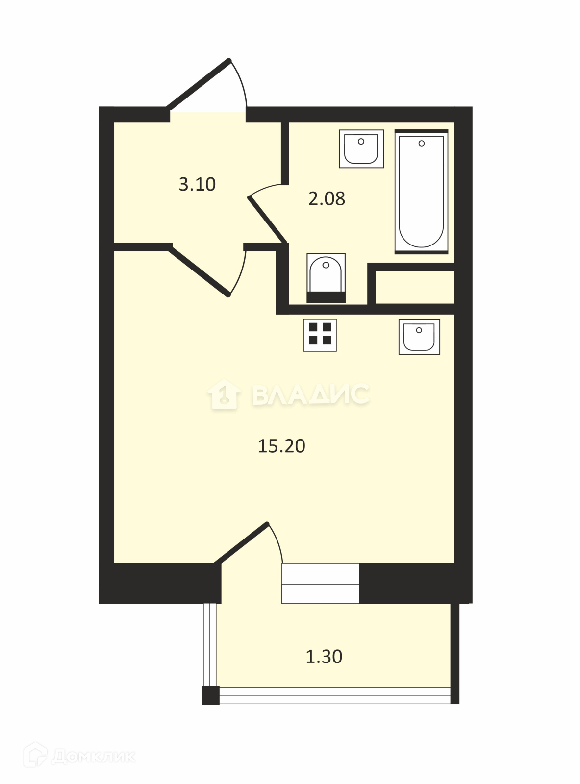 Общая площадь 26.5 м2