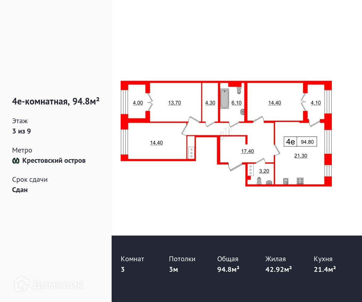 Общая площадь 94.8 м2